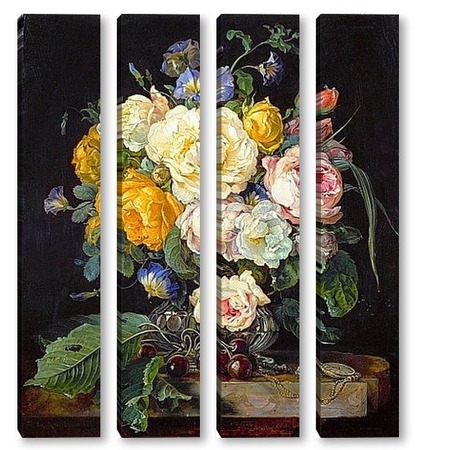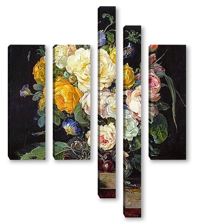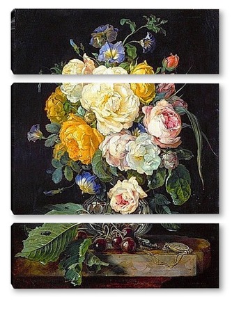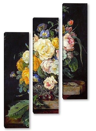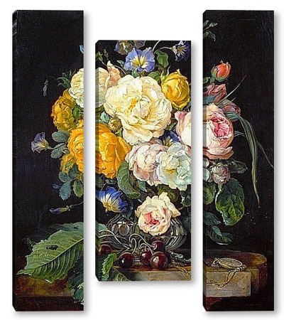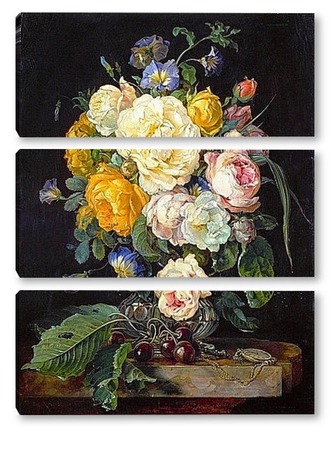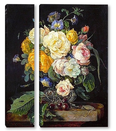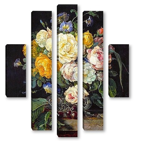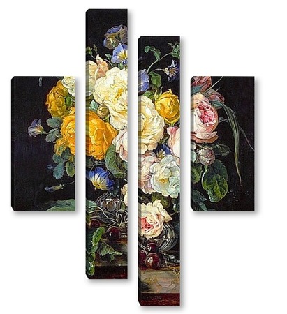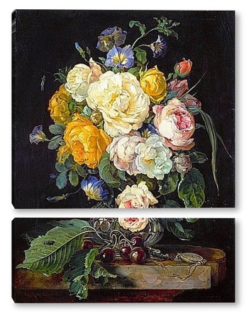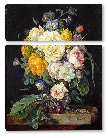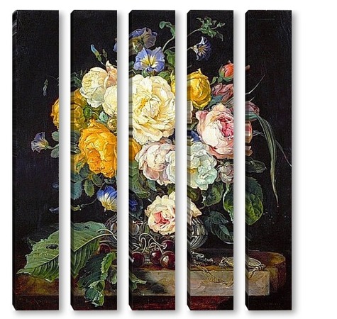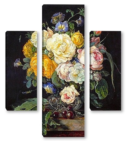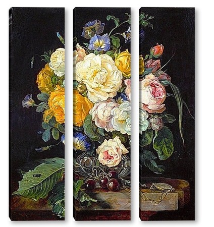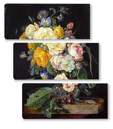Купить модульную картину Натюрморт с букетом цветов, вишнями и часами (1655-1565) (Вена,
