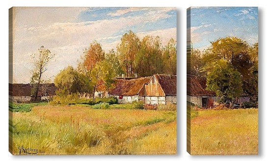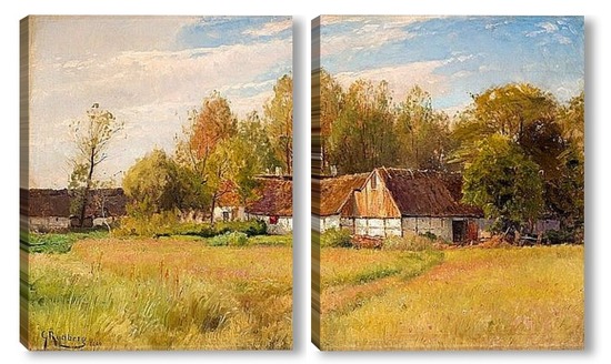 Купить модульную картину Ферма в Фальстербо с цветущимй лугом