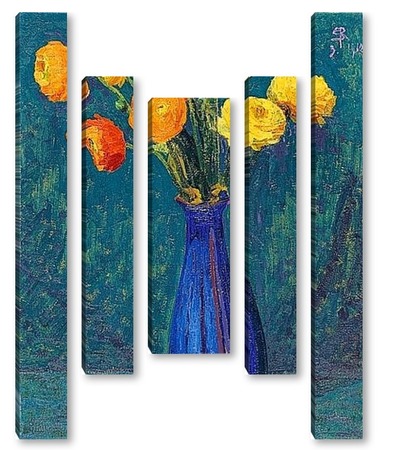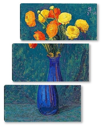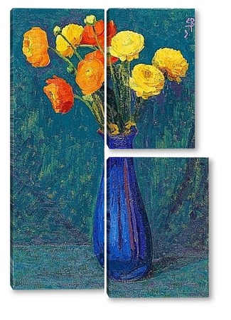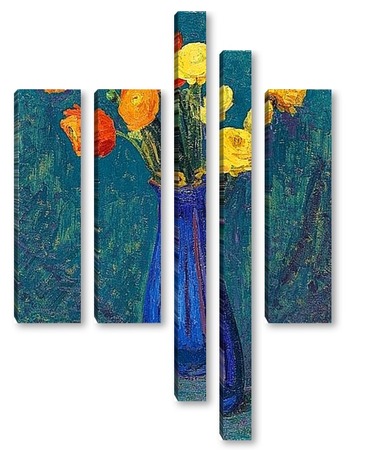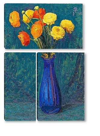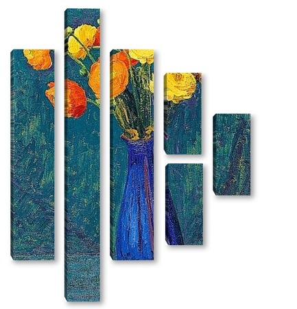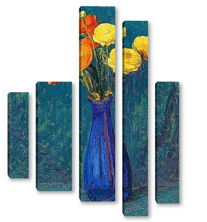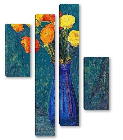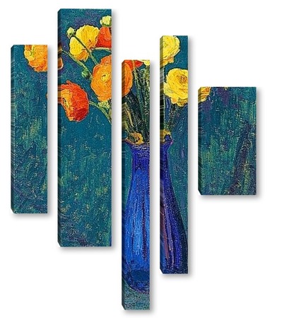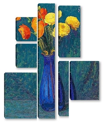 Купить модульную картину Анемоны в синей вазе
