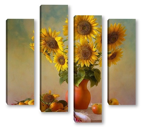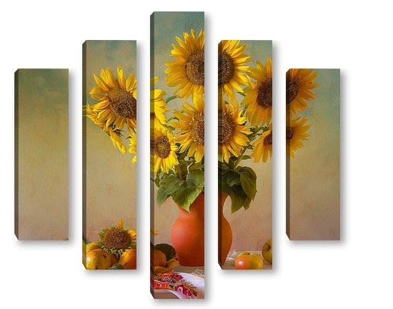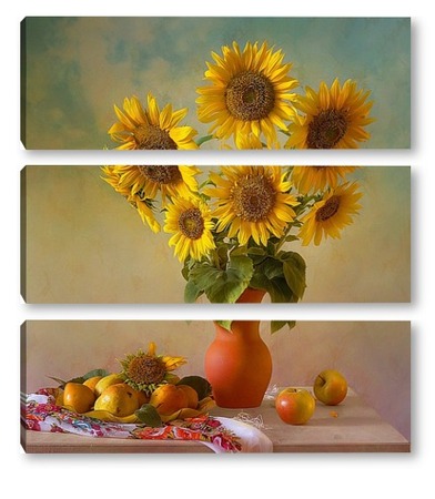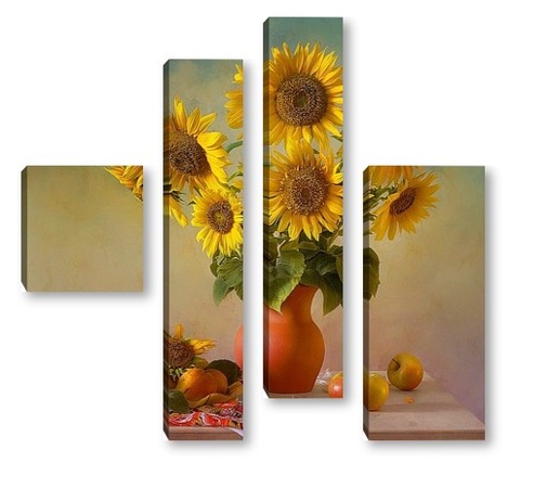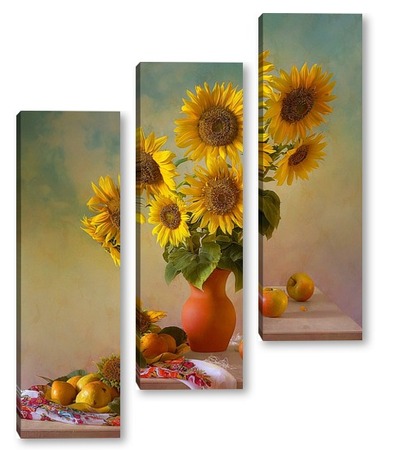 Купить модульную картину Подсолнухи и фрукты