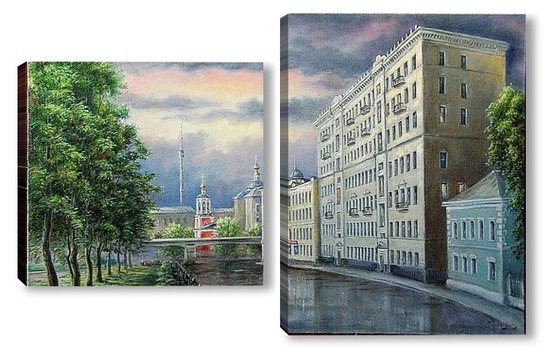 Купить модульную картину Сереневый бульвар.Дождь прошёл.
