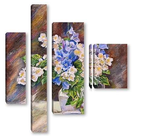 Купить модульную картину жасмин и колокольчики