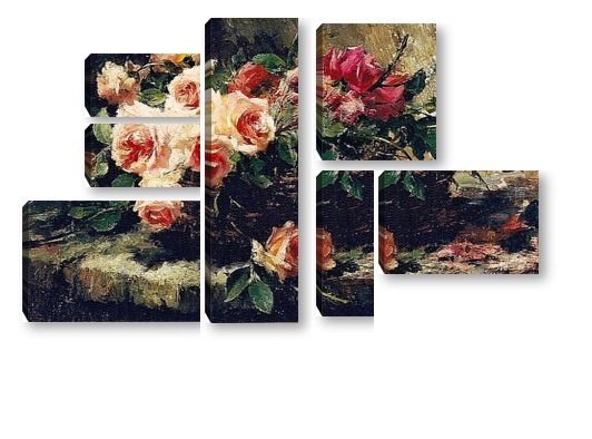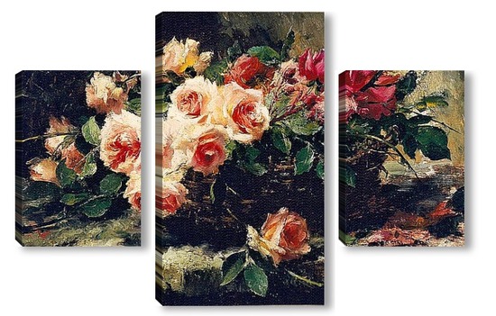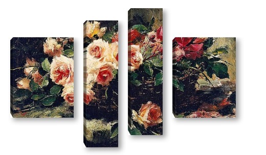 Купить модульную картину Розовые розы в корзине