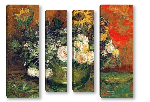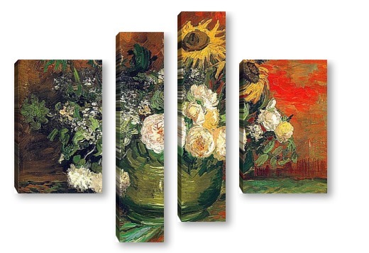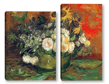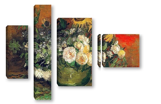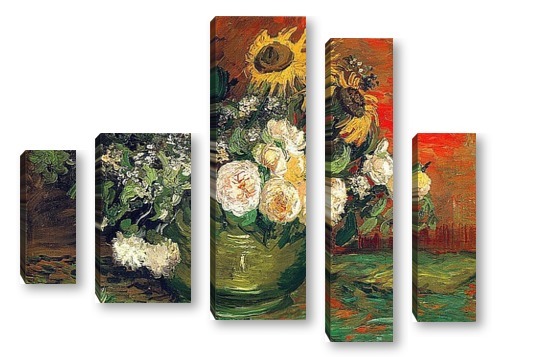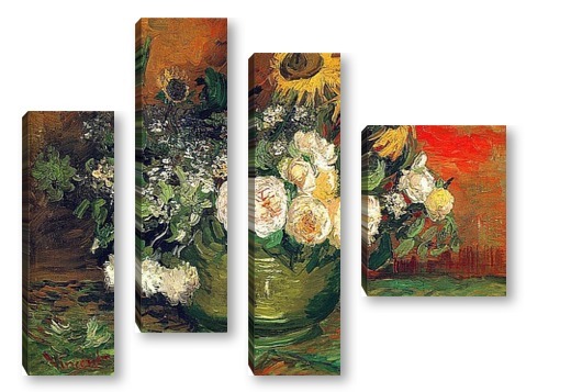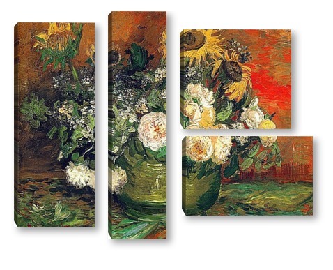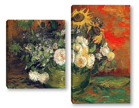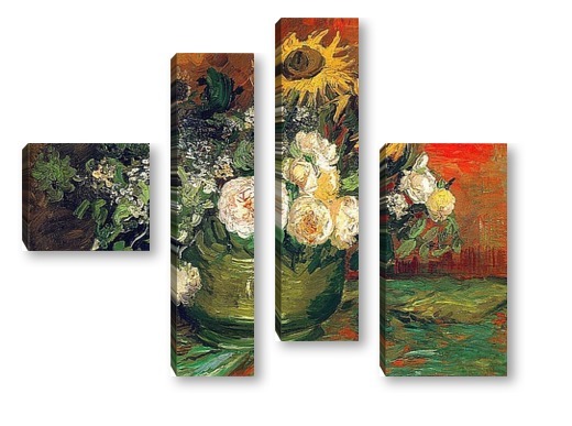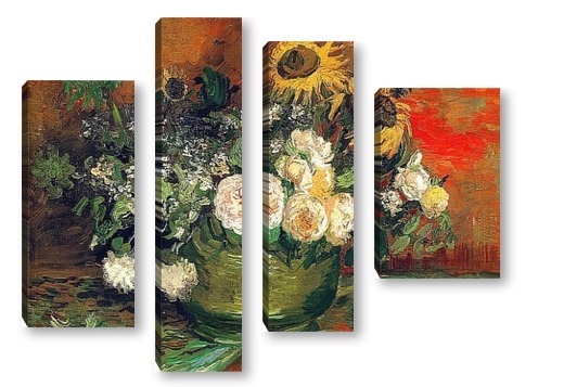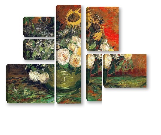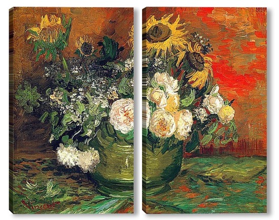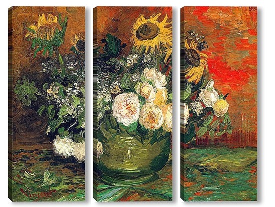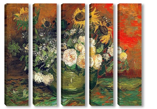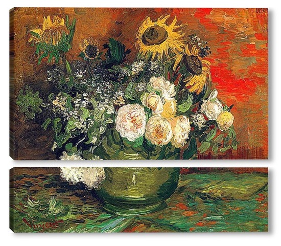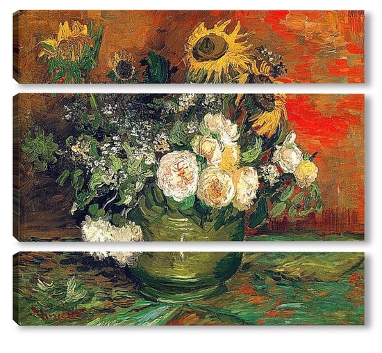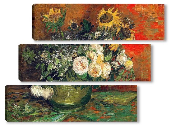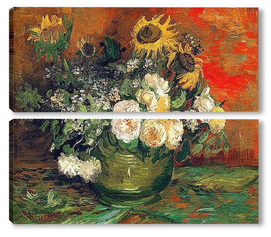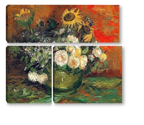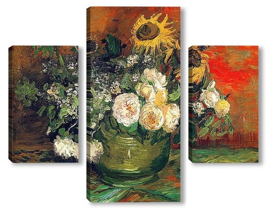 Купить модульную картину Натюрморт с розами и подсолнухами, 1886
