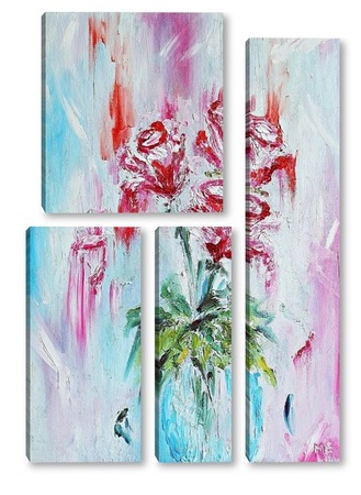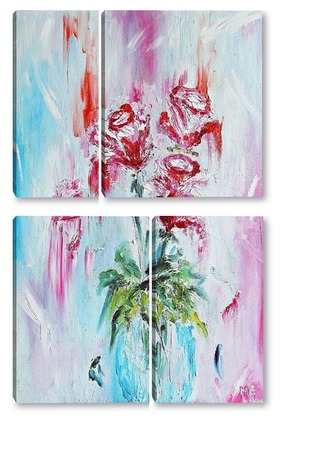 Купить модульную картину Розы в вазе