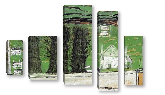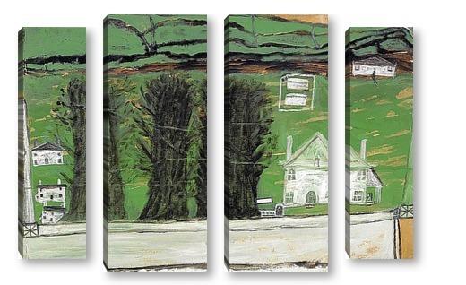 Купить модульную картину Три дерева: белый дом в пейзаже