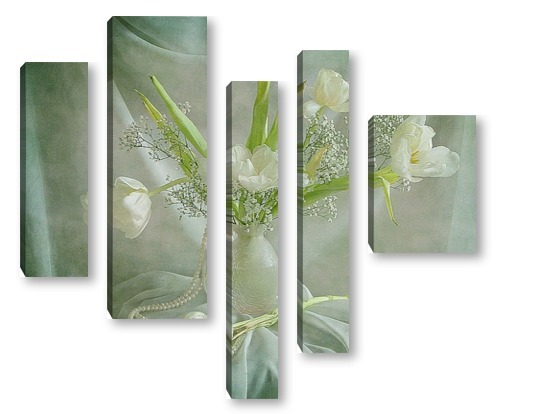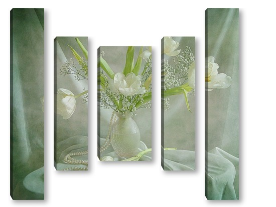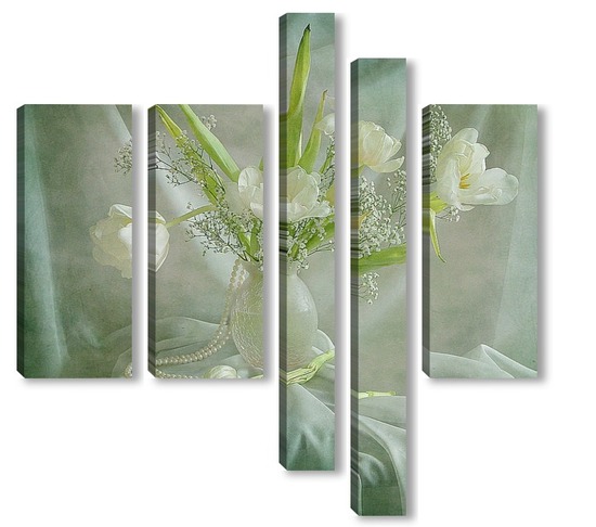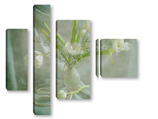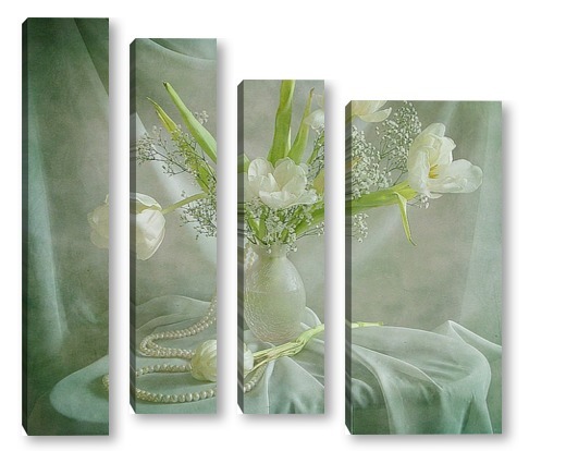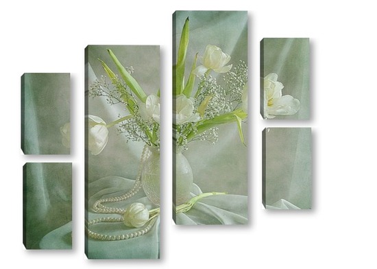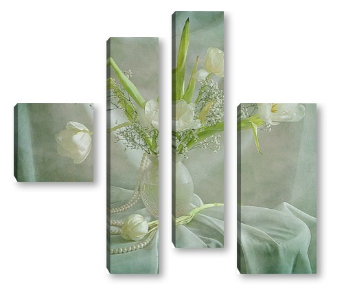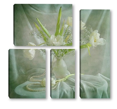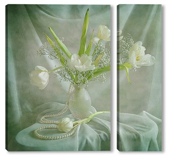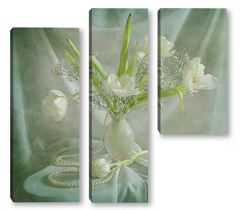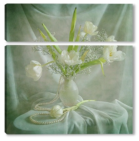 Купить модульную картину Белые тюльпаны с жемчугом