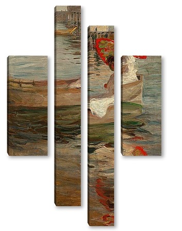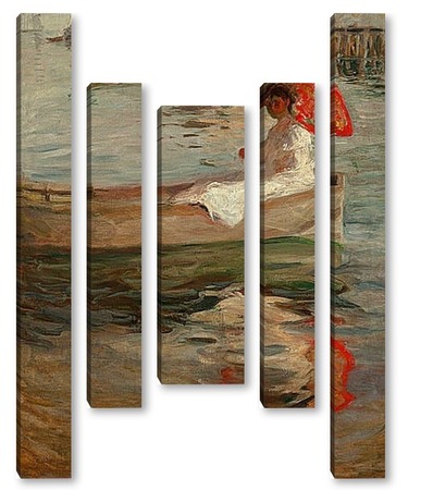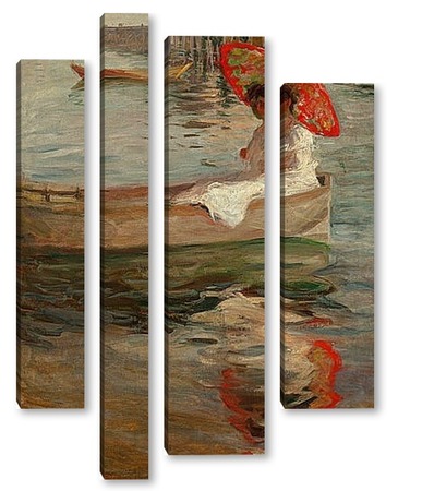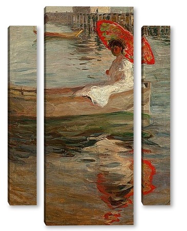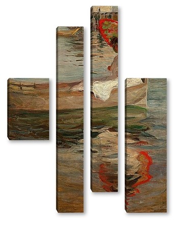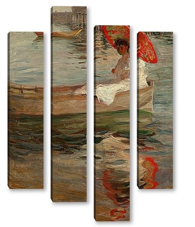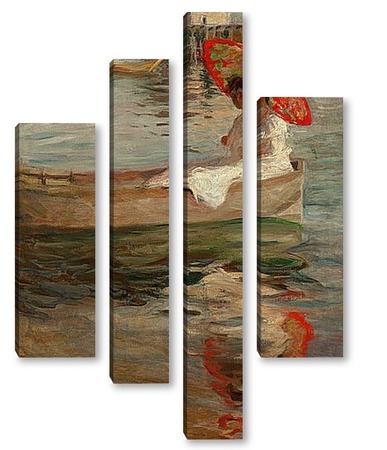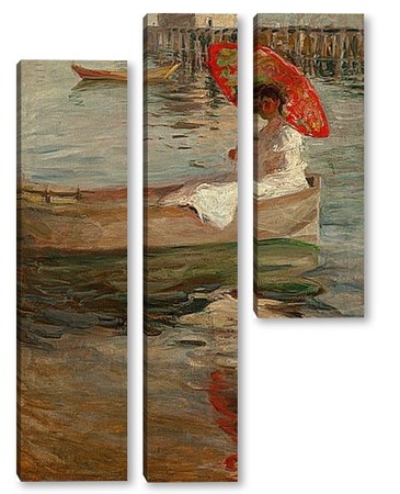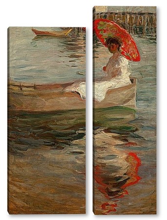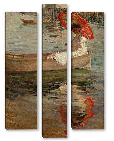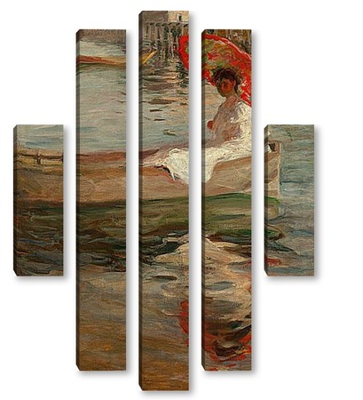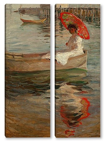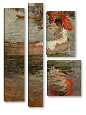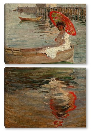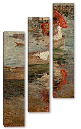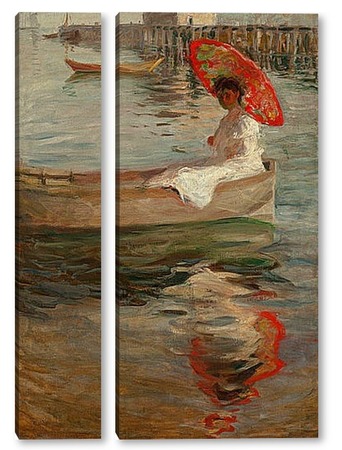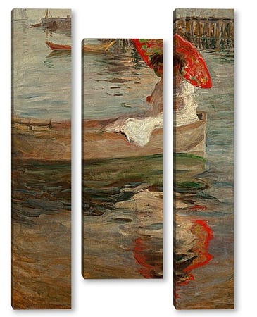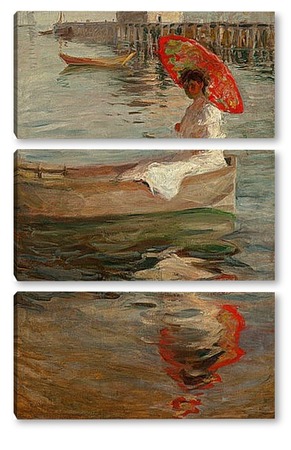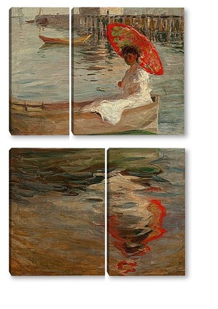 Купить модульную картину Женщина с Темно-красным Пляжным зонтиком