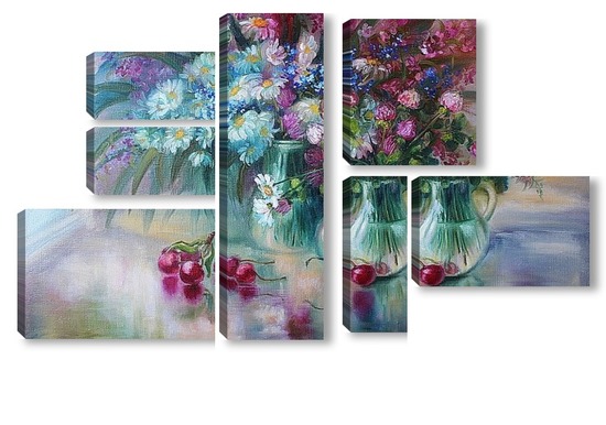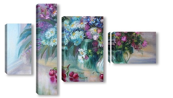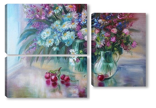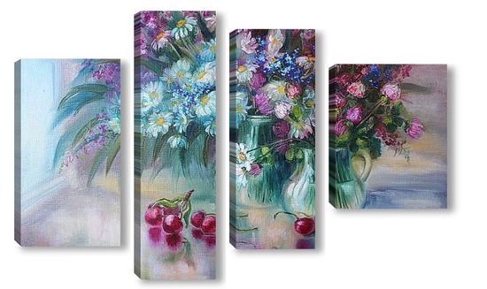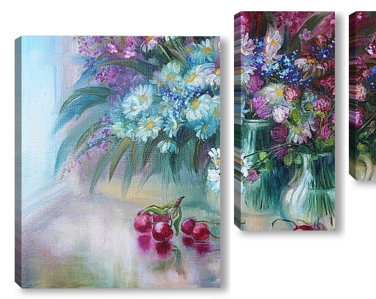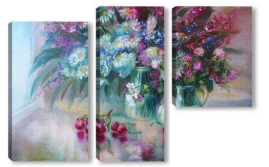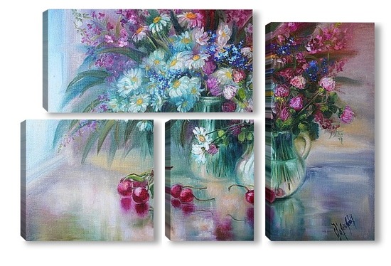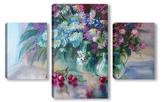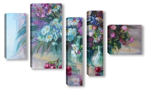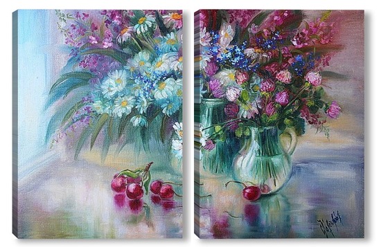 Купить модульную картину "Букет с ромашками" холст,масло 50 х 70