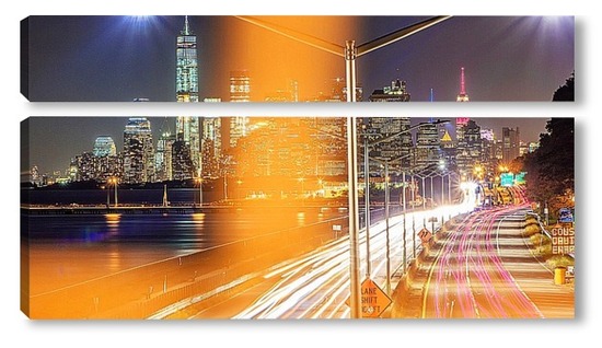 Купить модульную картину ночь, улица, фонарь, Манхеттен