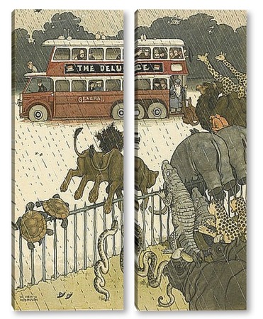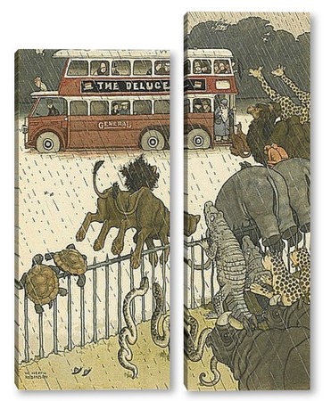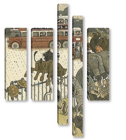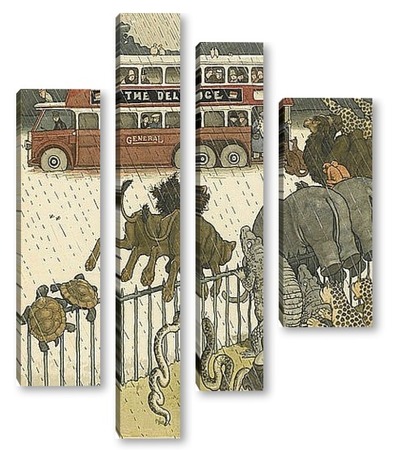Купить модульную картину Паника в зоопарке в сырую погоду