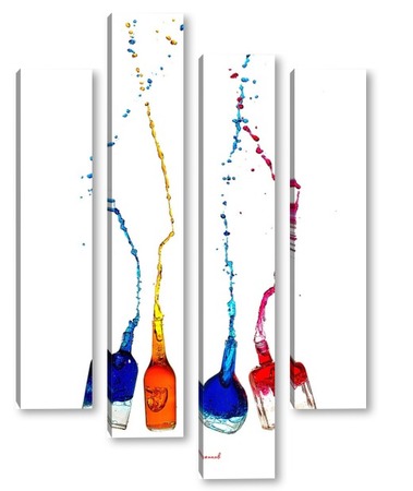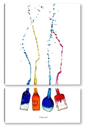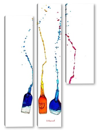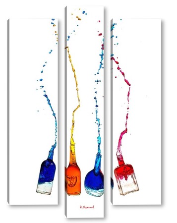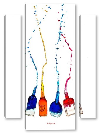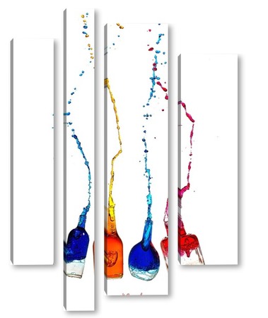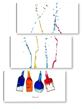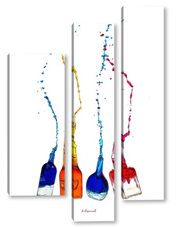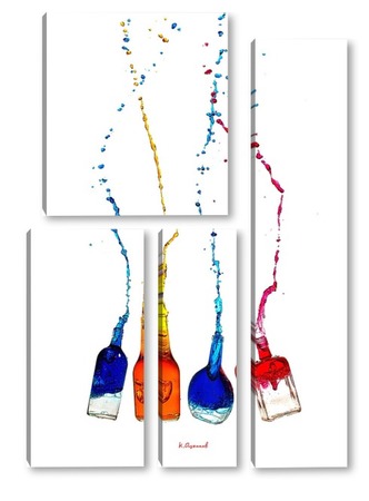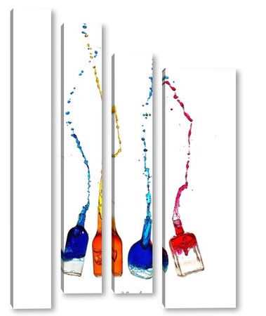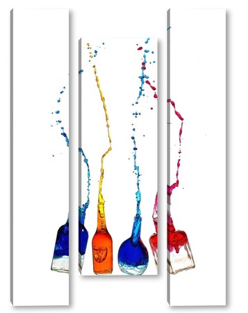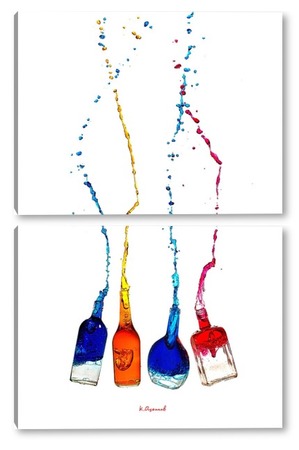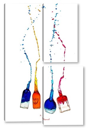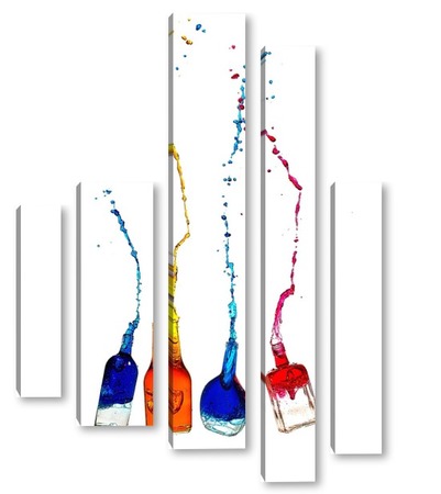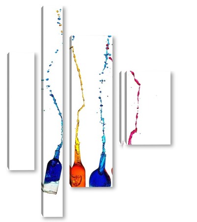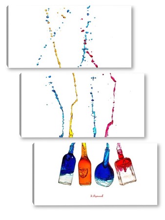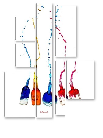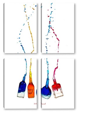 Купить модульную картину Бутылки, из которых льются струи вина.