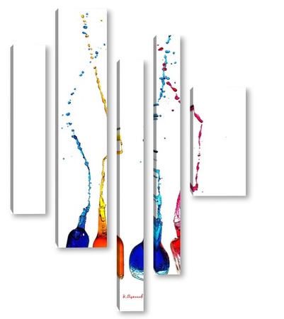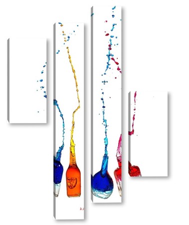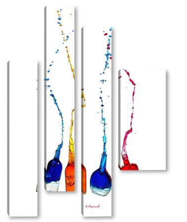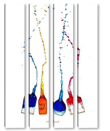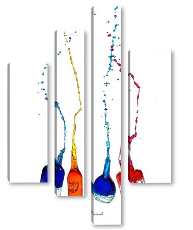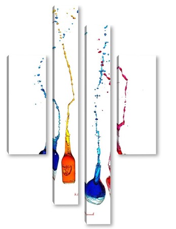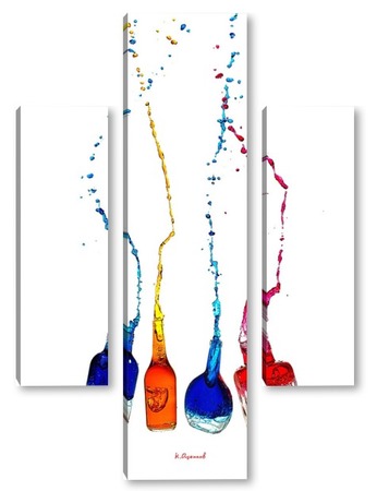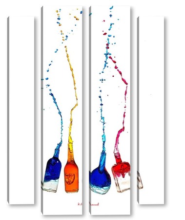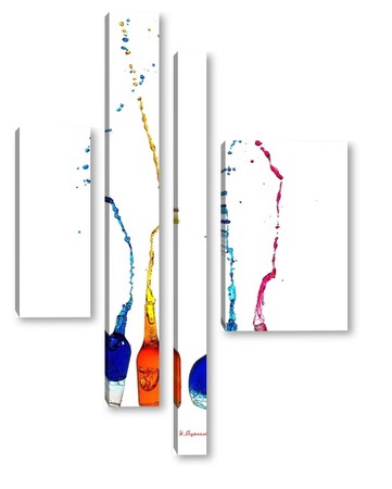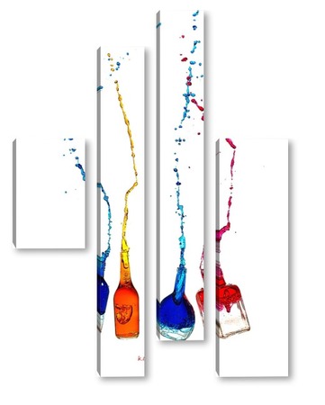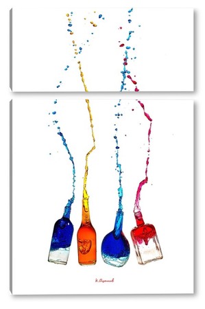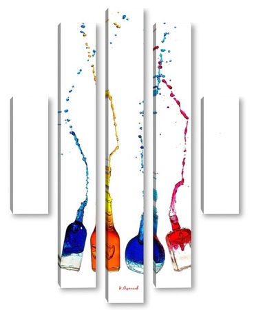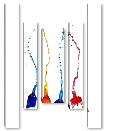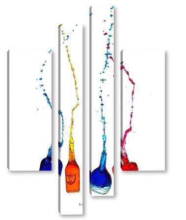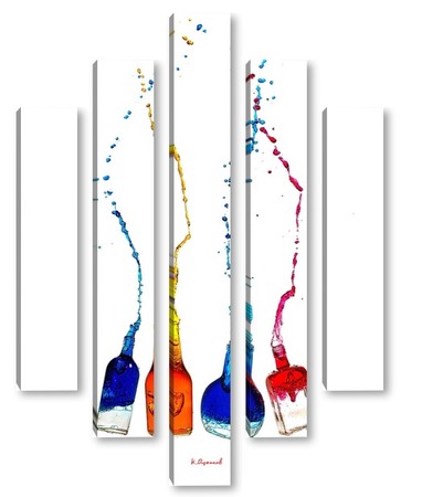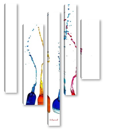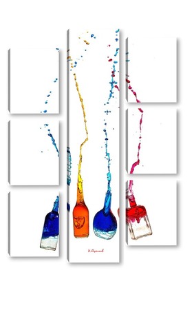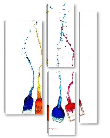 Купить модульную картину Бутылки, из которых льются струи вина.