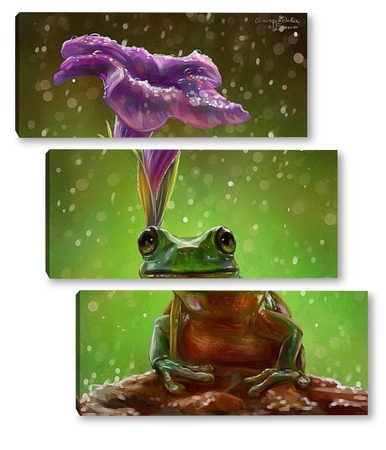 Купить модульную картину Лягушка и цветок