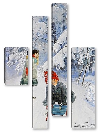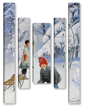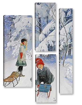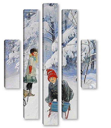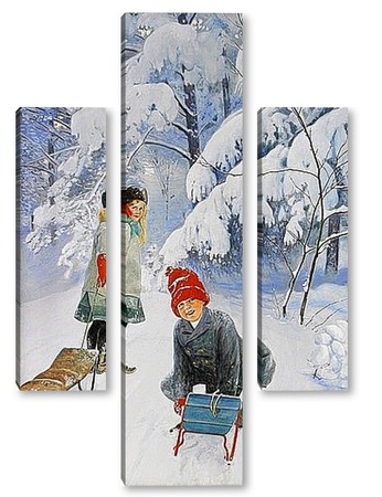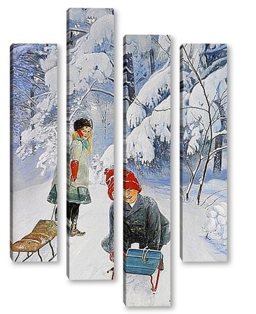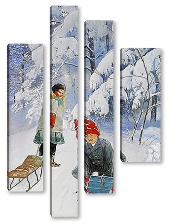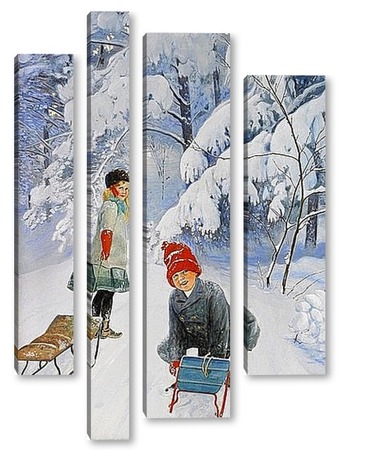 Купить модульную картину Катание на санках