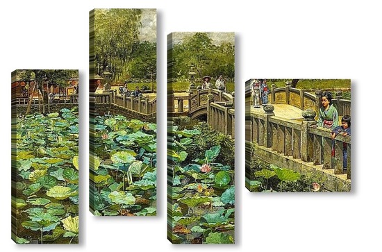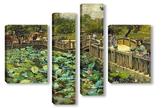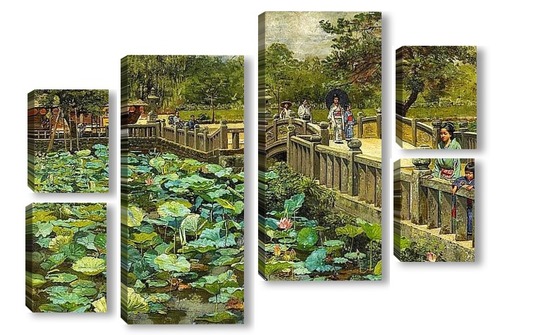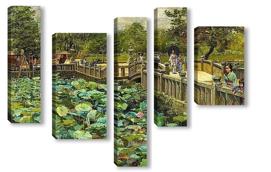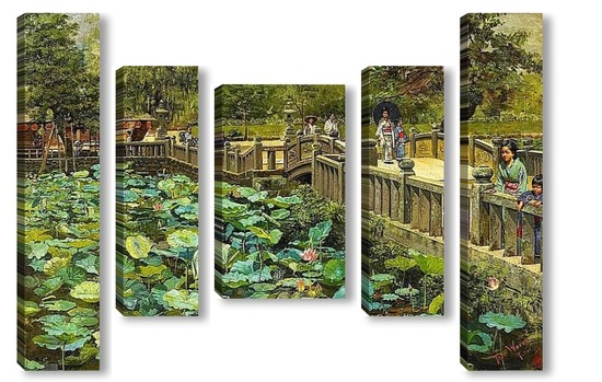 Купить модульную картину Пруд с лотосами, Сиба, Токио