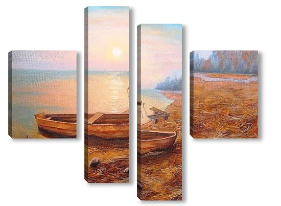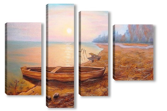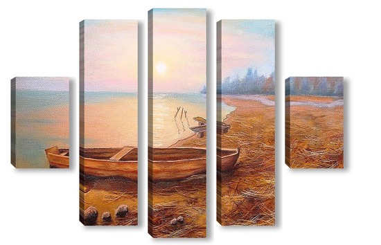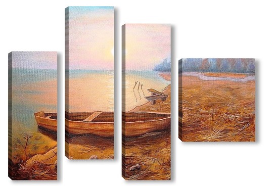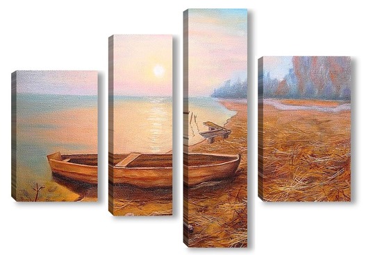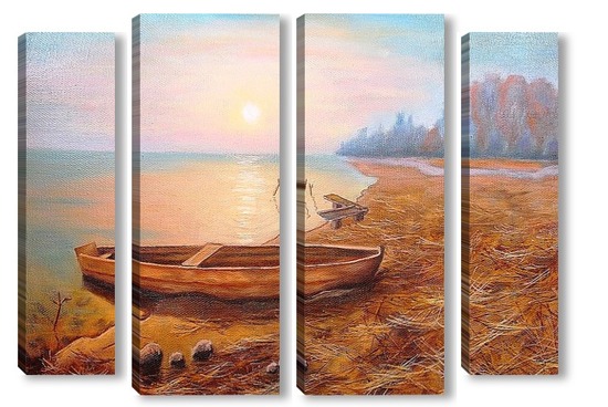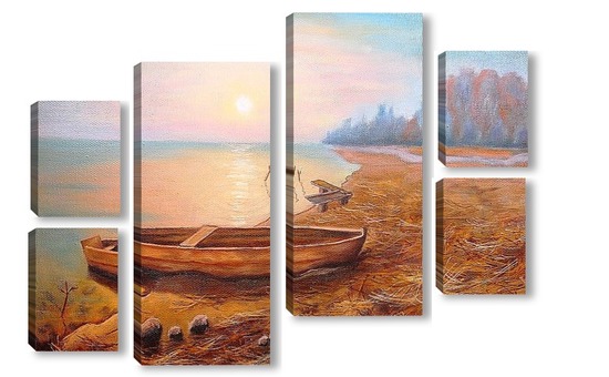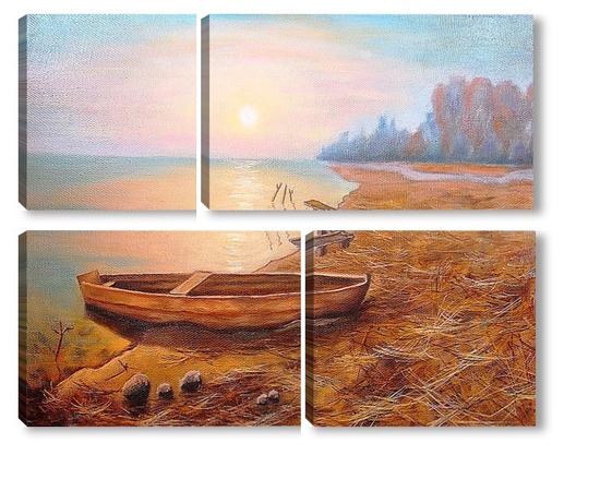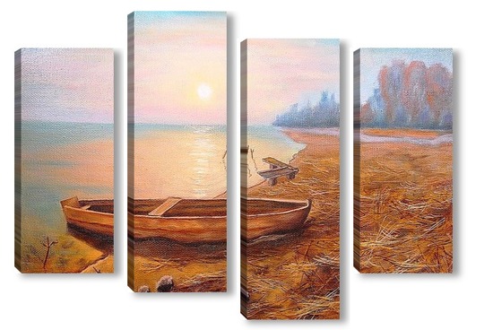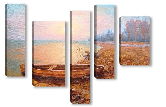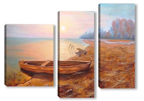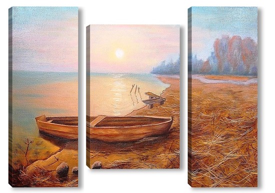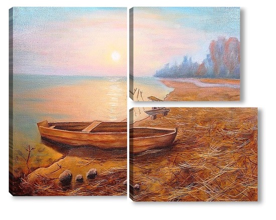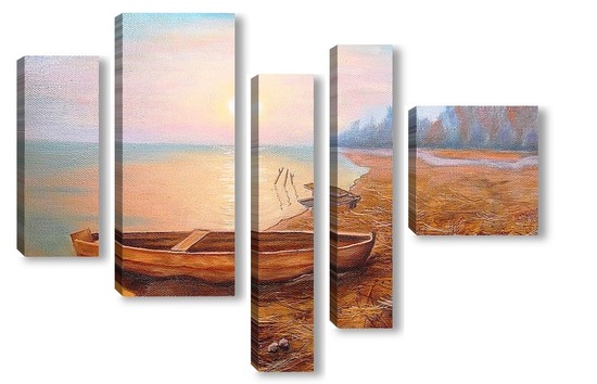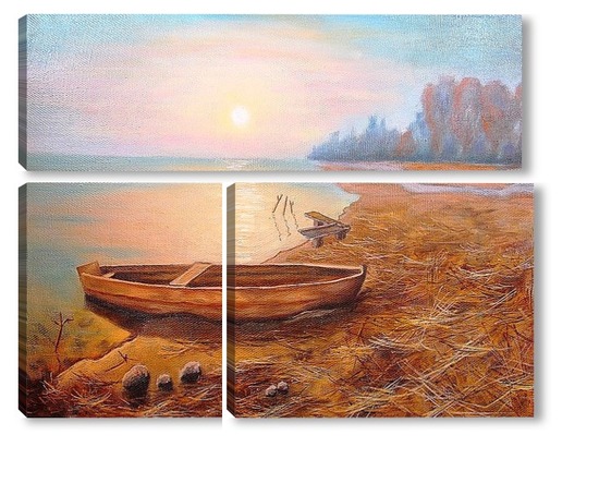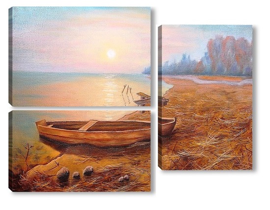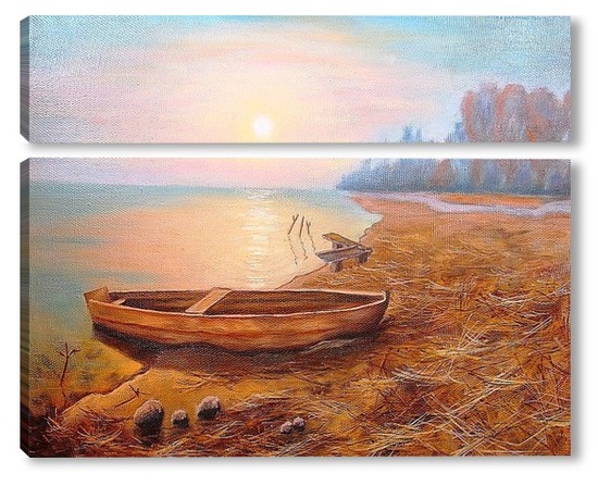 Купить модульную картину Картина маслом. Рассвет на озере. Холст 40х60