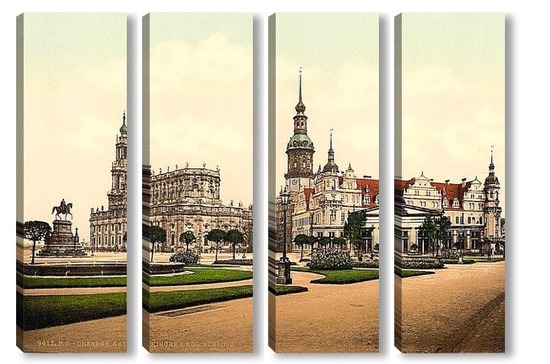 Купить модульную картину Церковь и Королевский замок, Старый город, Дрезден, Саксония, Германия.1890-1900 гг