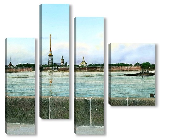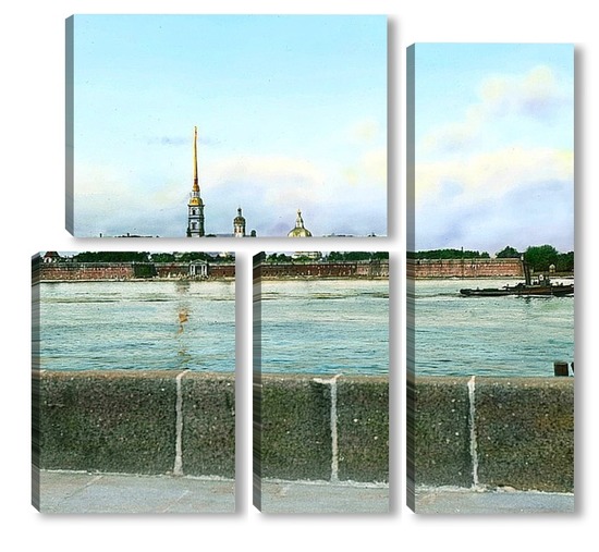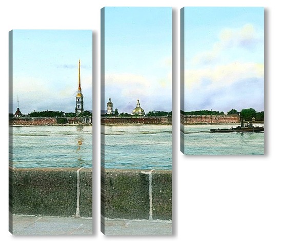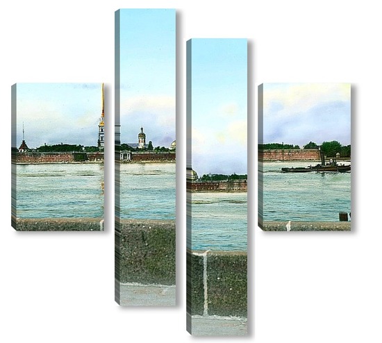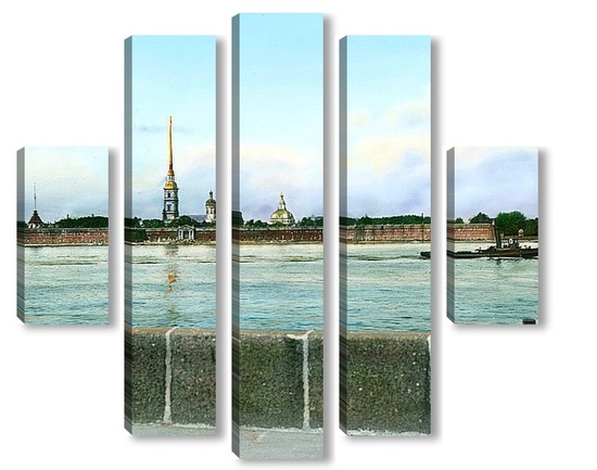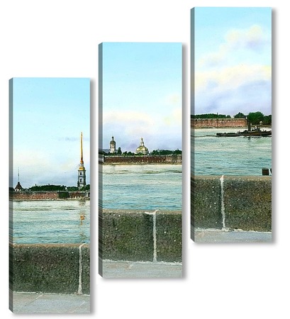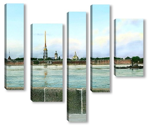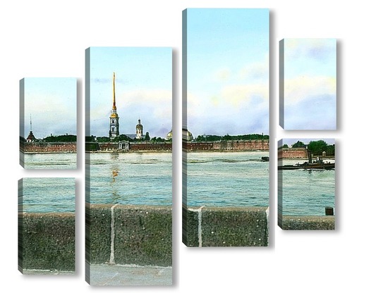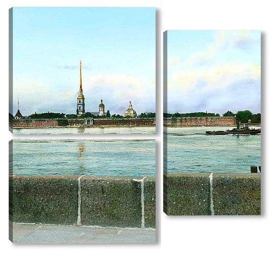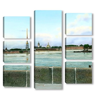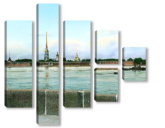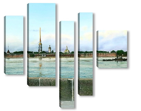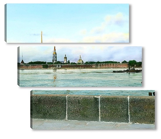 Купить модульную картину Санкт-Петербург. Панорамный вид на Петропавловскую крепость,через Неву