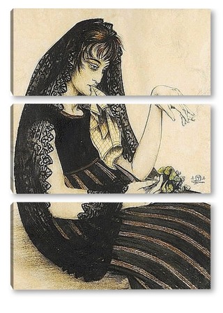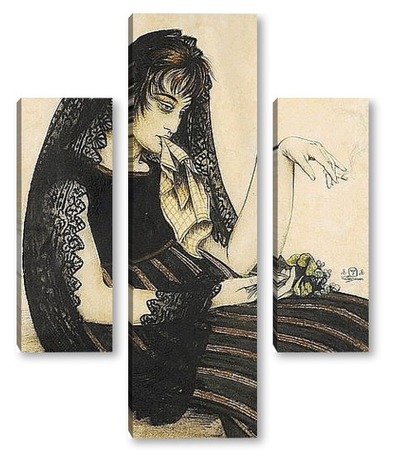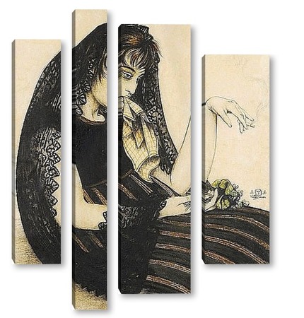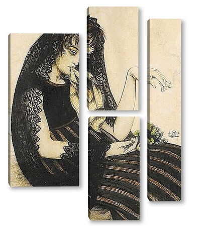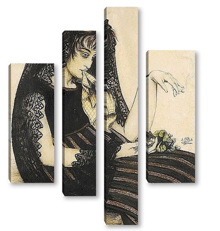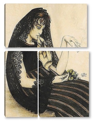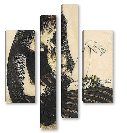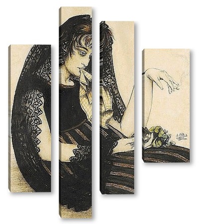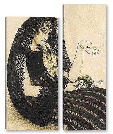 Купить модульную картину Женщина с сигаретой и букетом