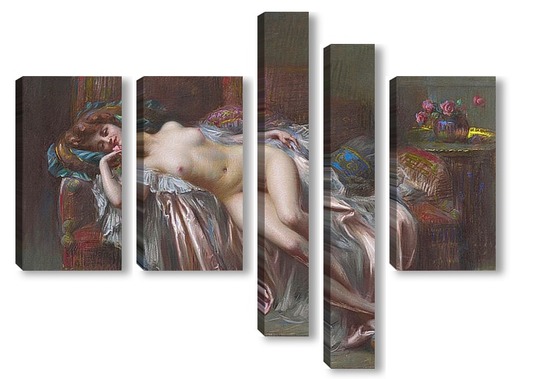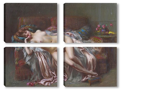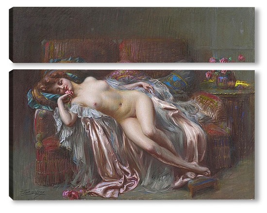 Купить модульную картину Лежащая обнаженная с розами
