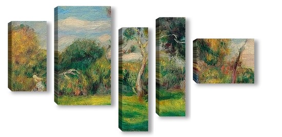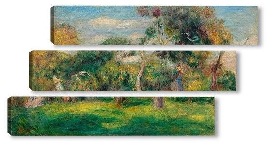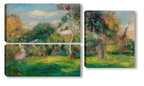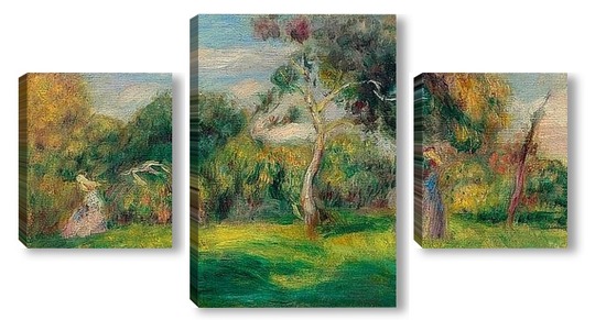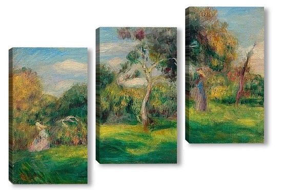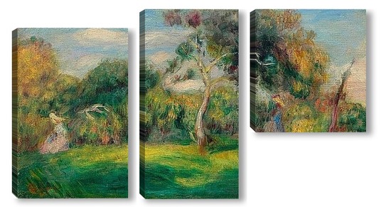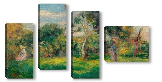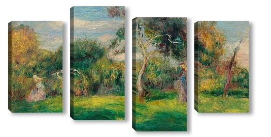 Купить модульную картину Луг, деревья и женщины