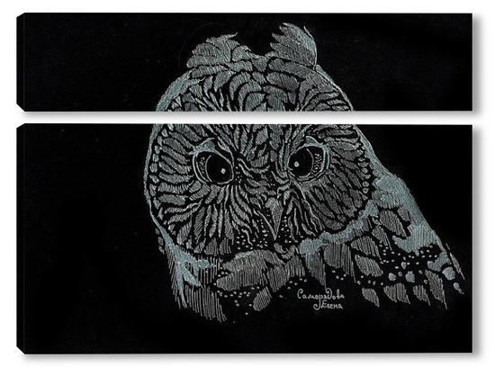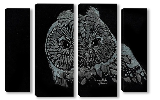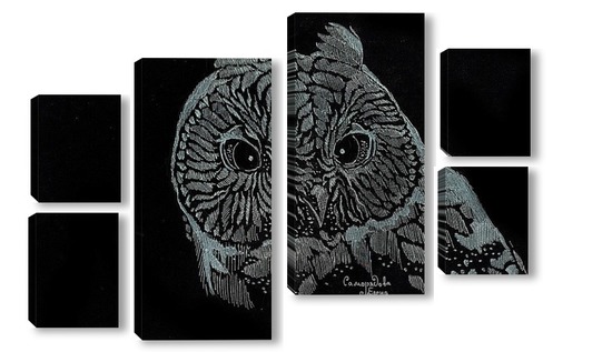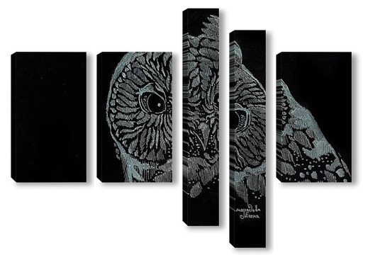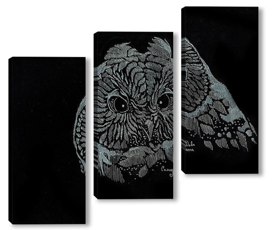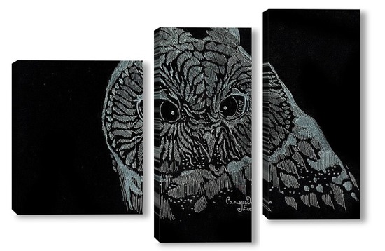 Купить модульную картину Сова на черном фоне