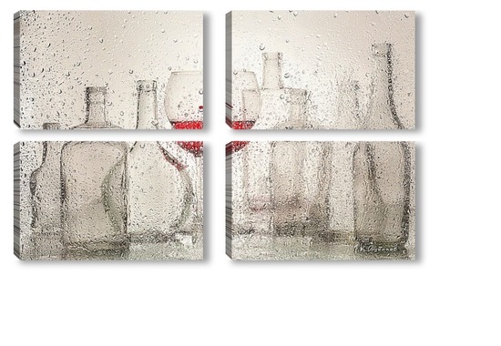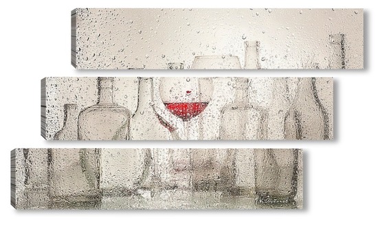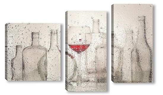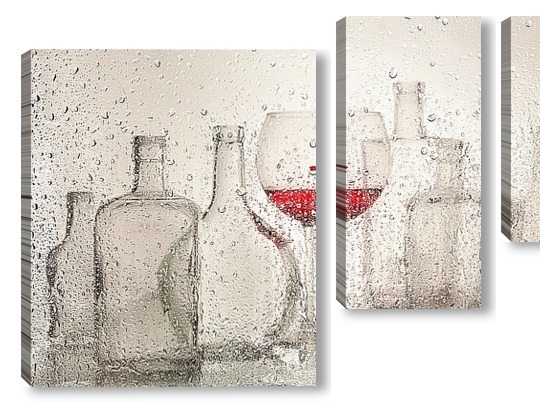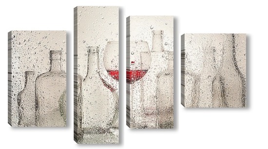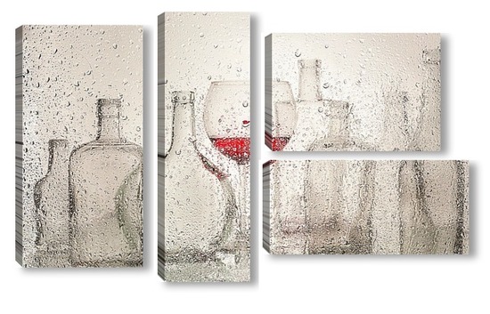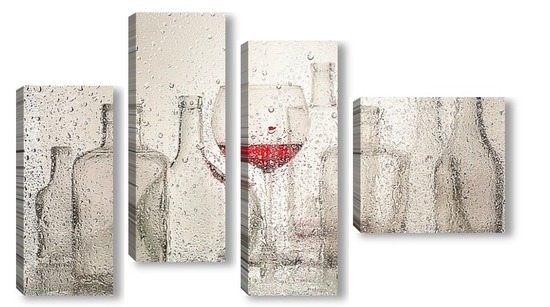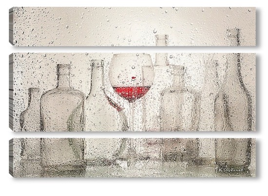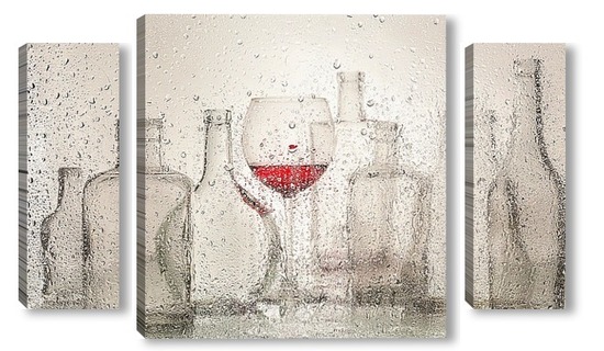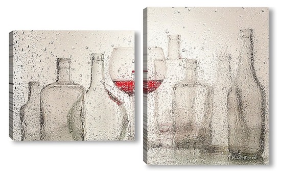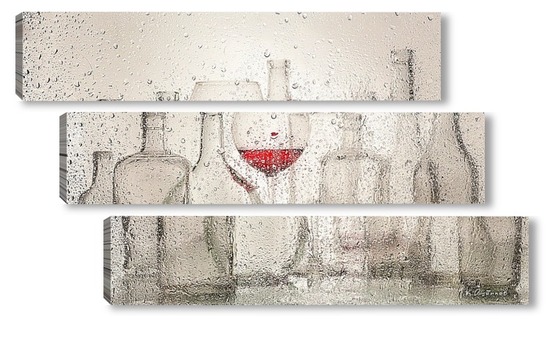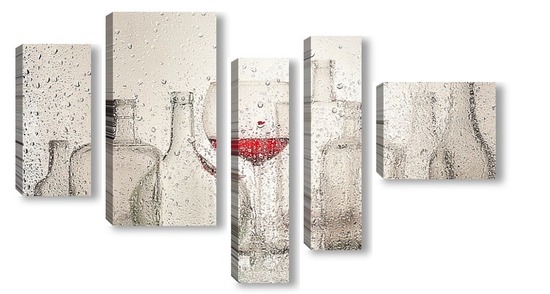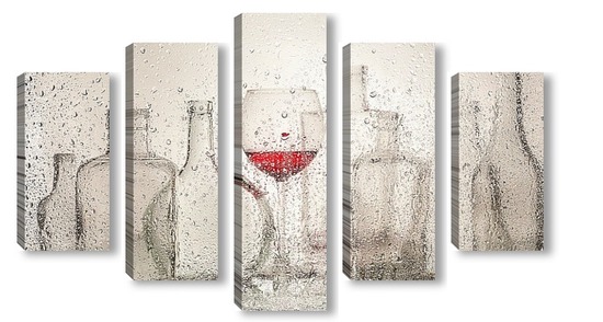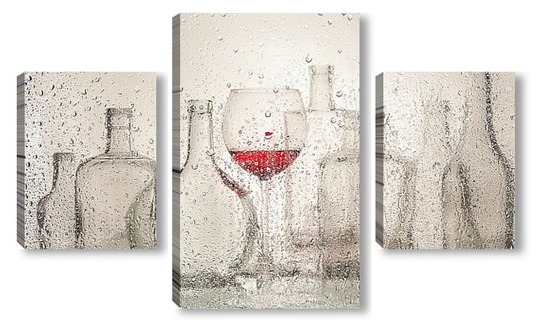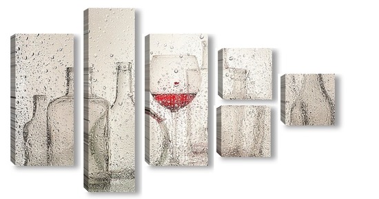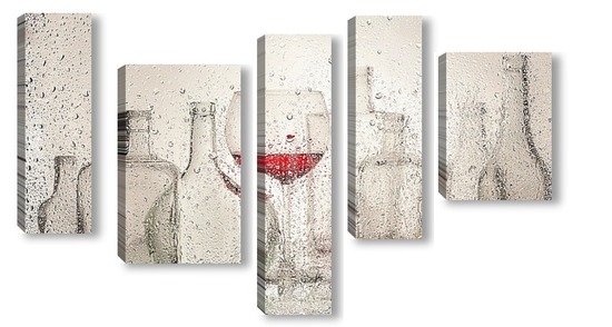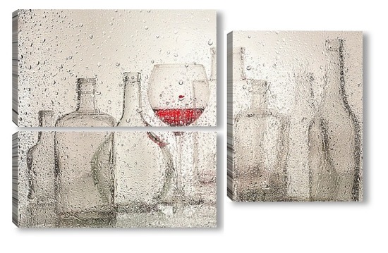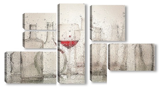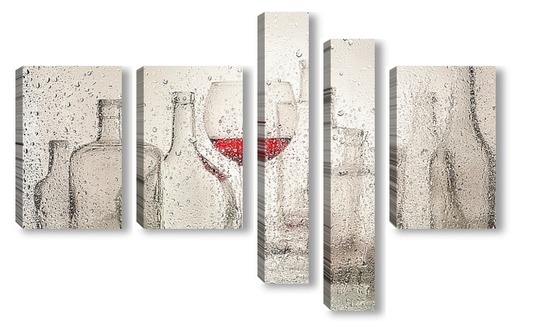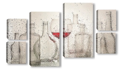 Купить модульную картину Бутылки с вином за мокрым стеклом.