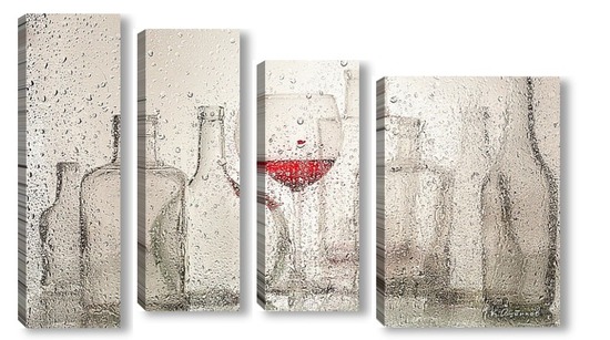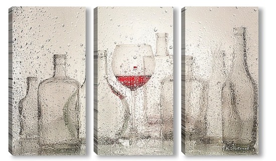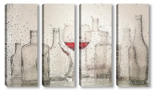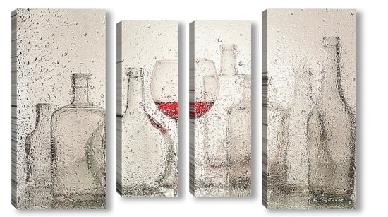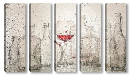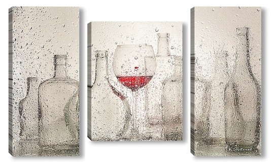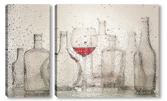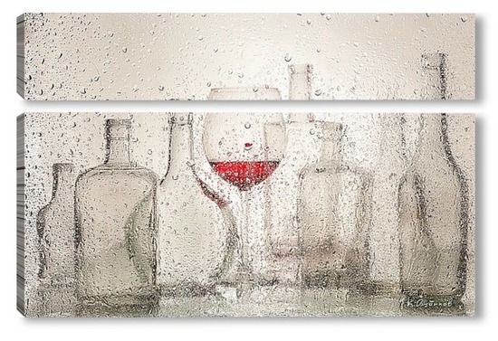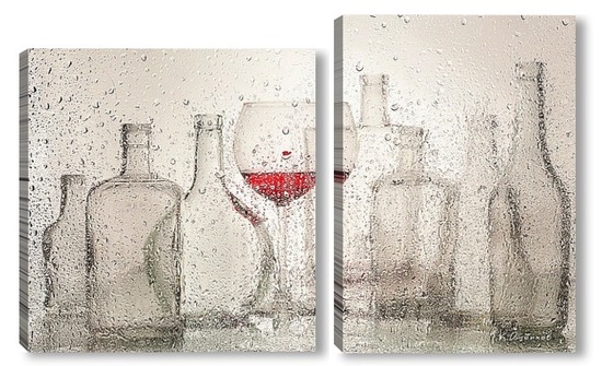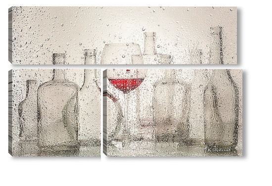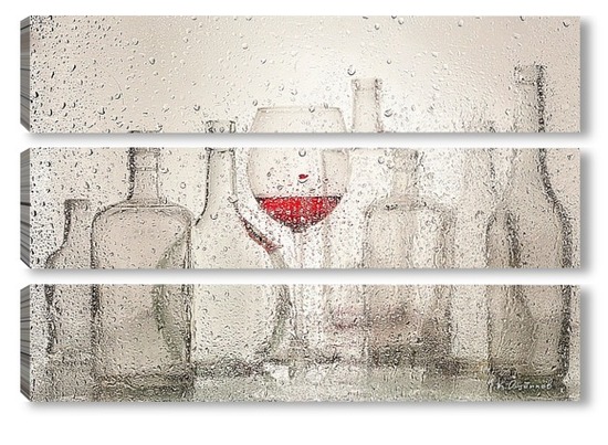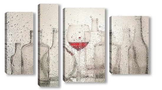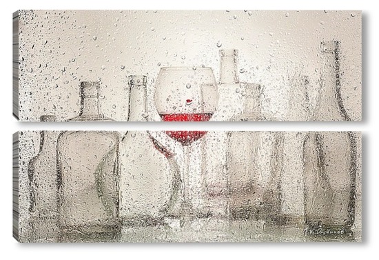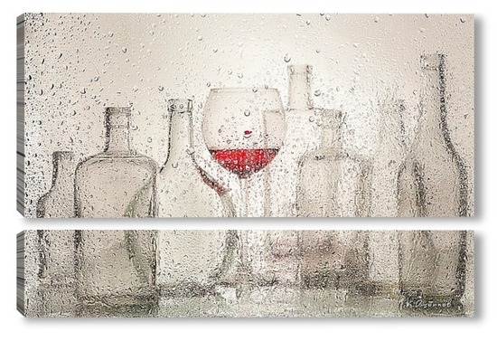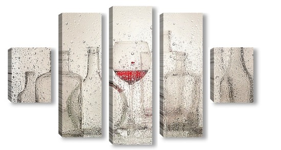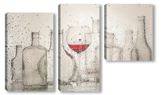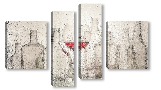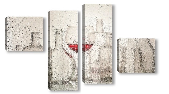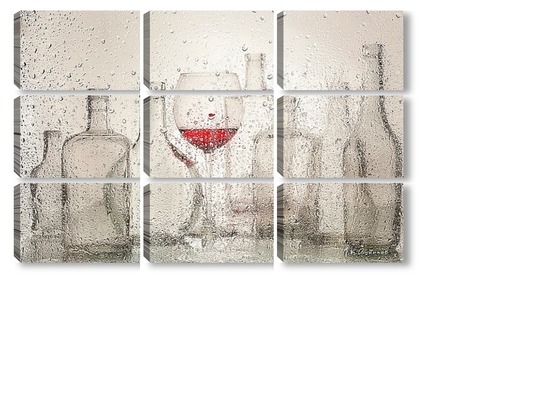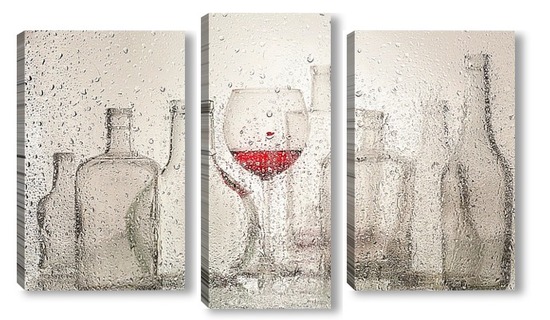 Купить модульную картину Бутылки с вином за мокрым стеклом.