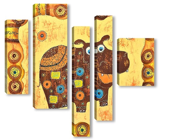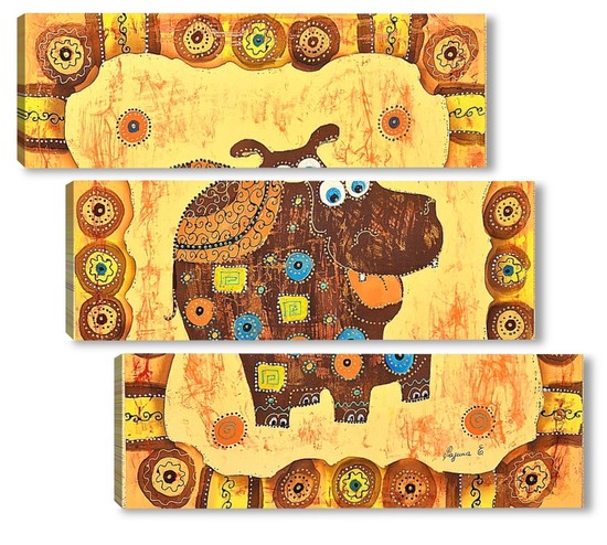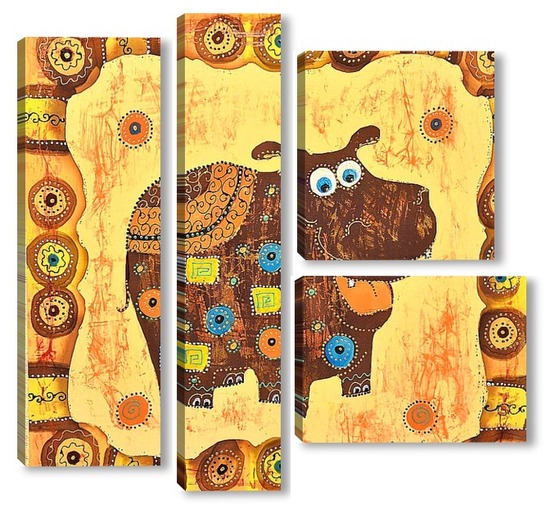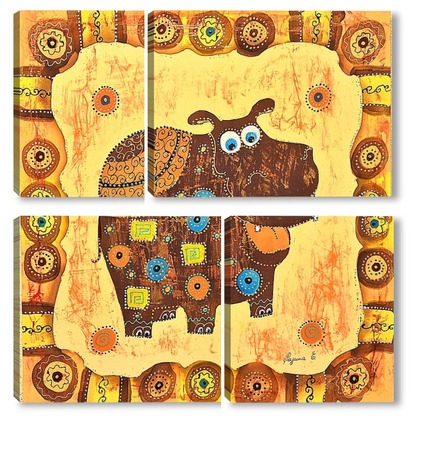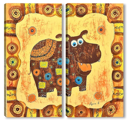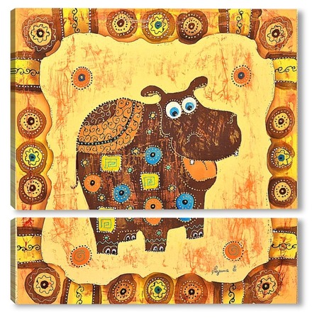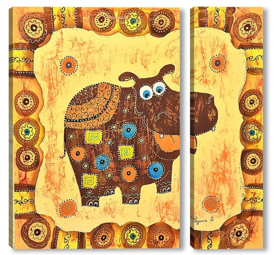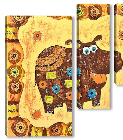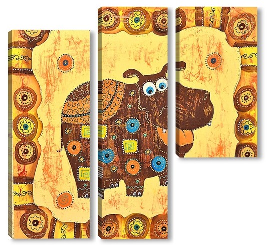 Купить модульную картину Бегемотик в стиле этно