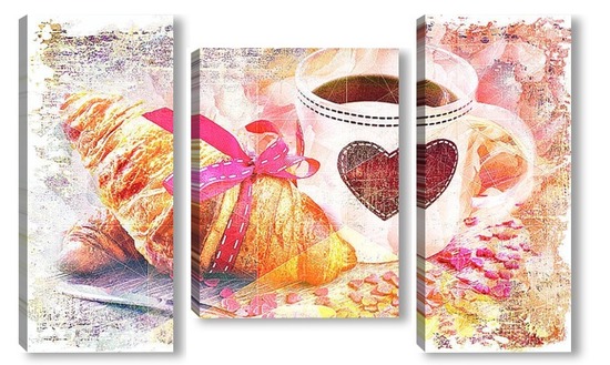 Купить модульную картину кофе и круассан
