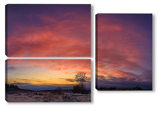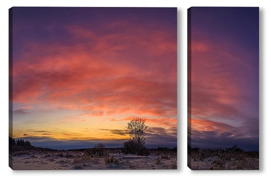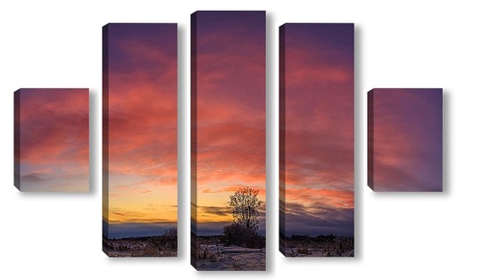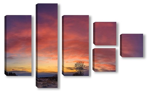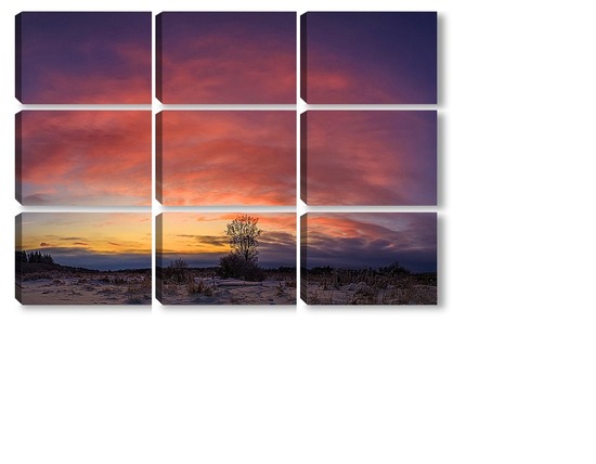 Купить модульную картину Одинокое дерево на закате солнца