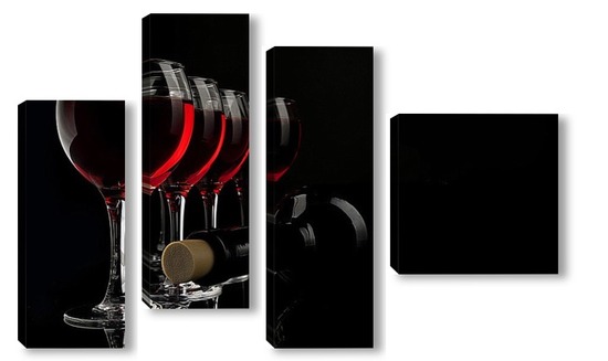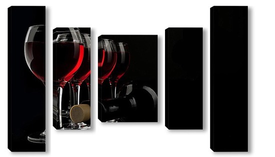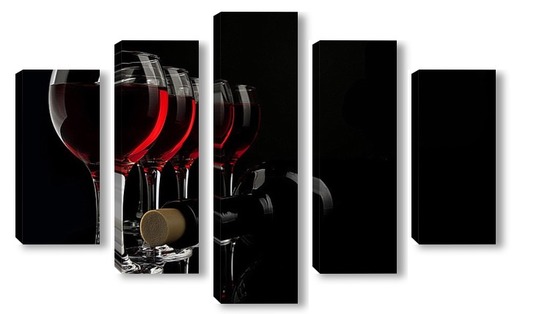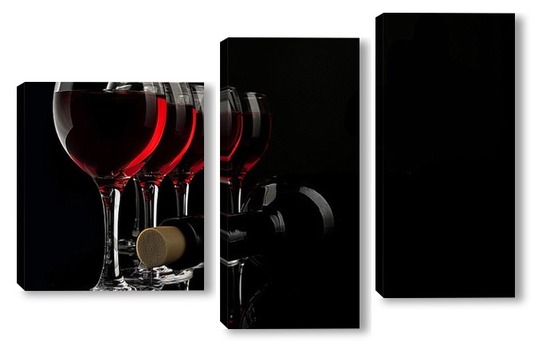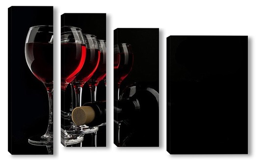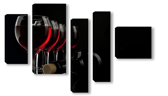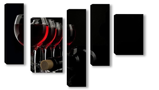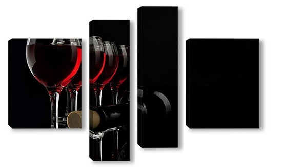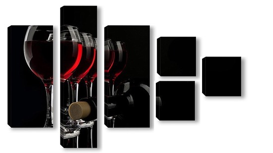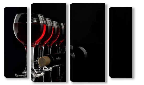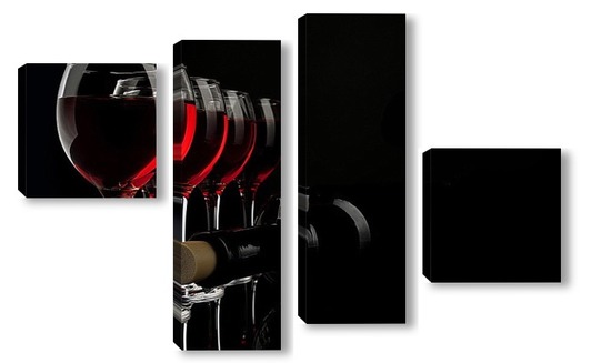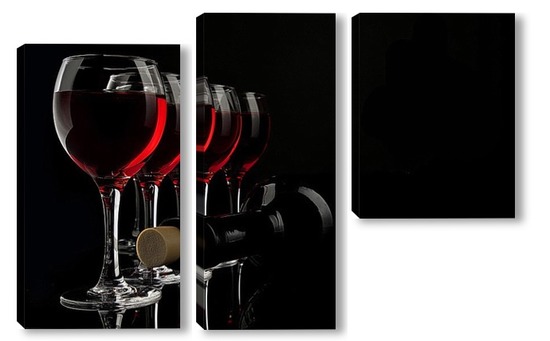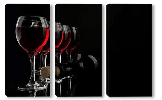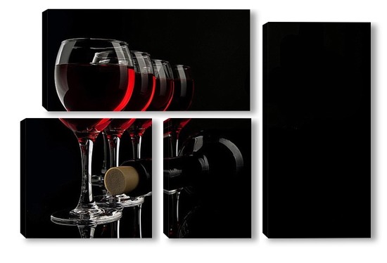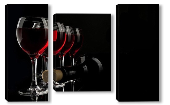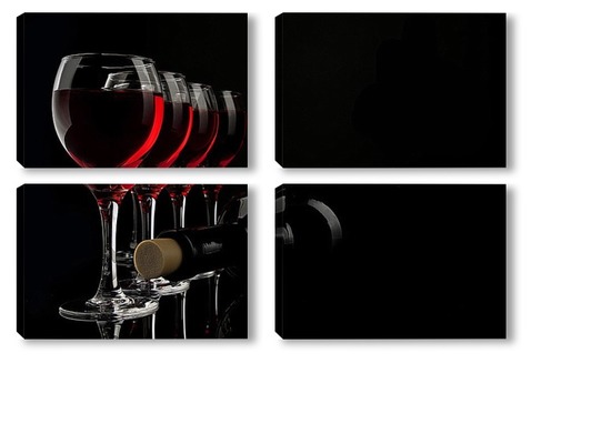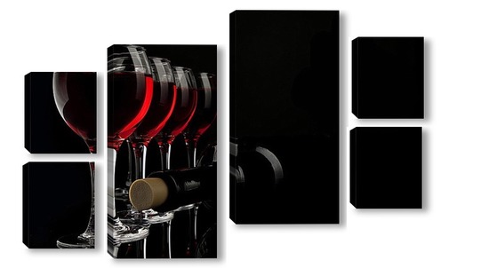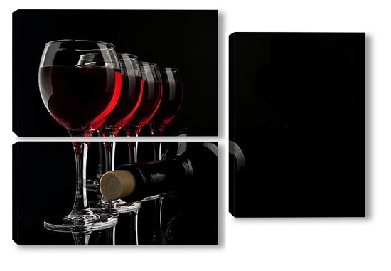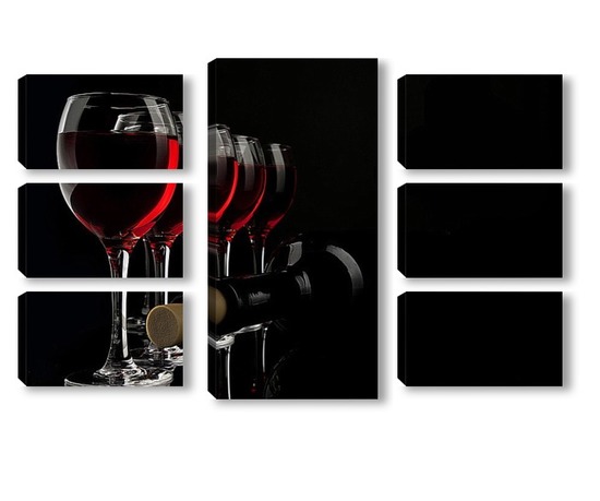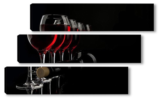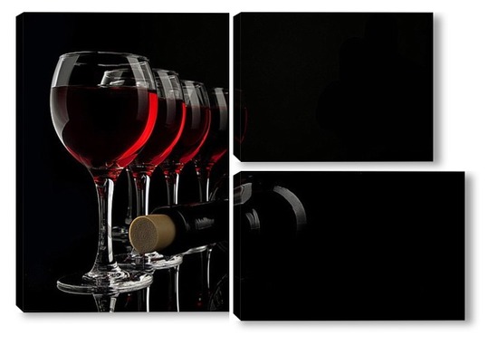 Купить модульную картину Силуэты нескольких бокалов с вином и бутылкой на черном фоне