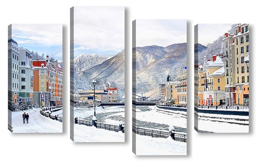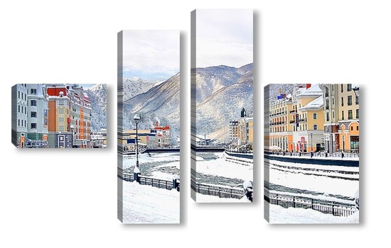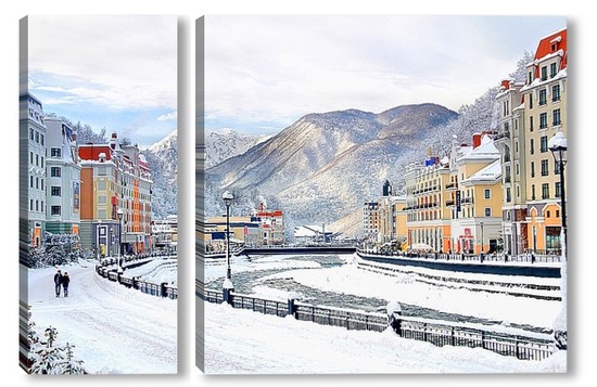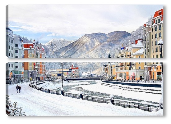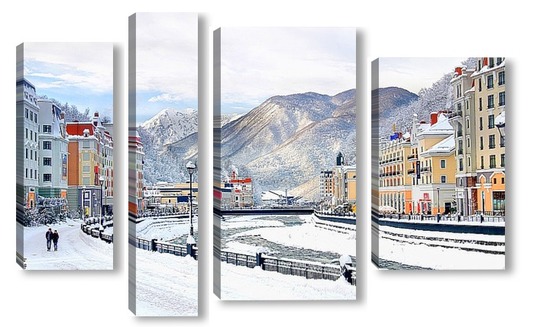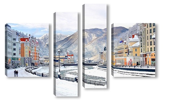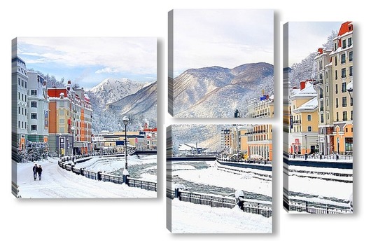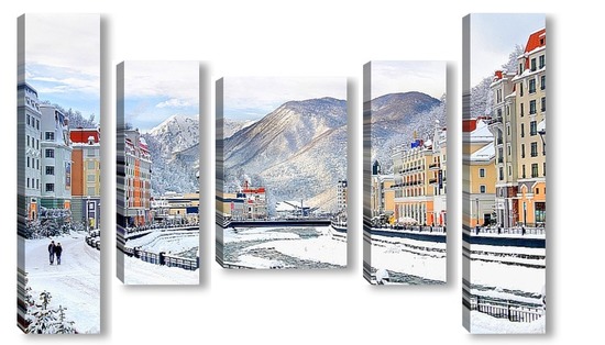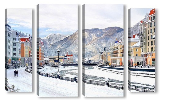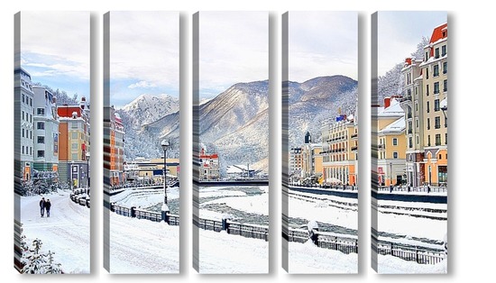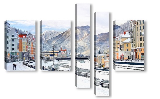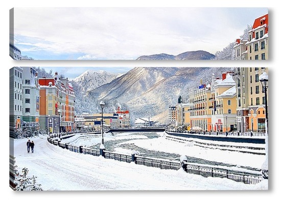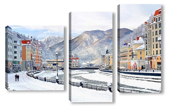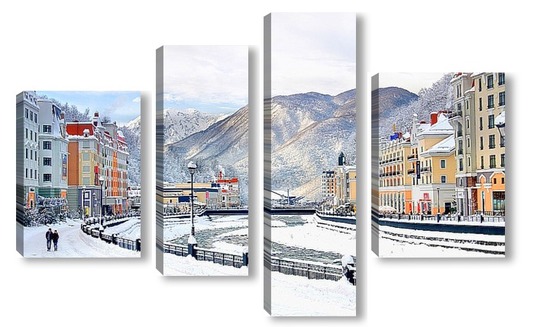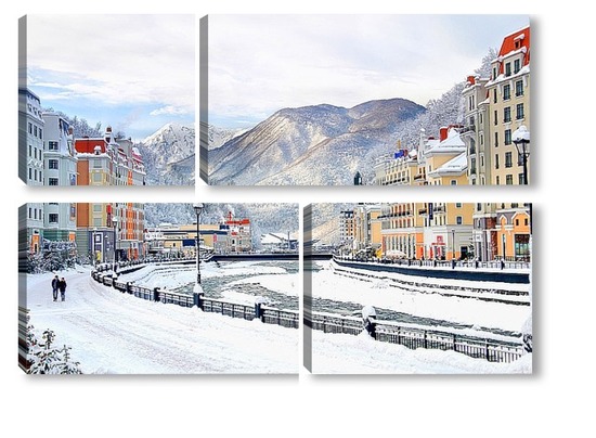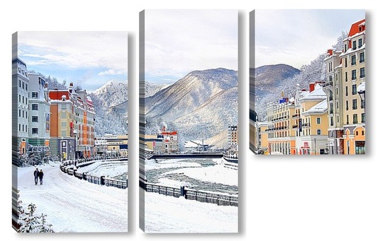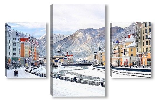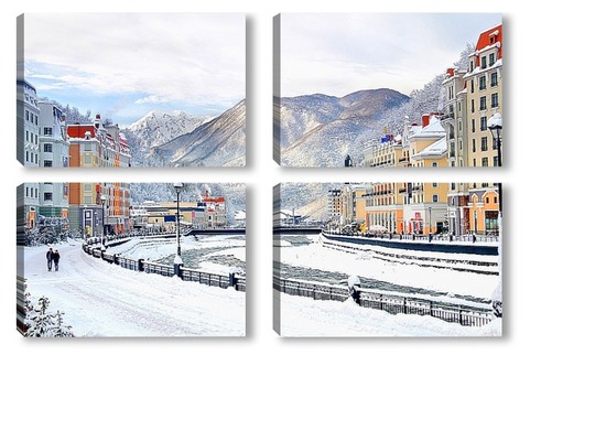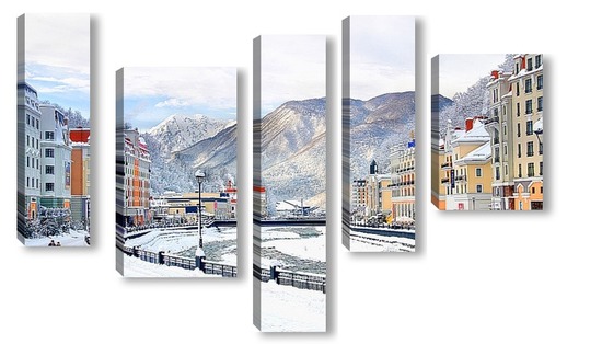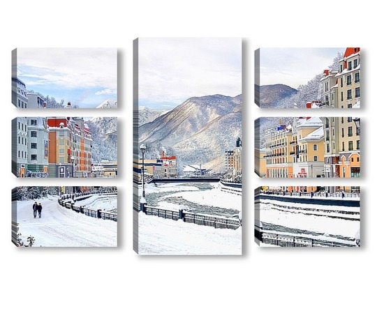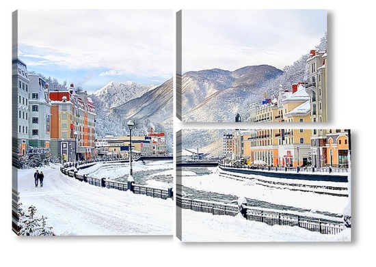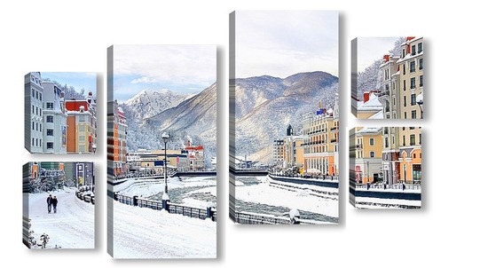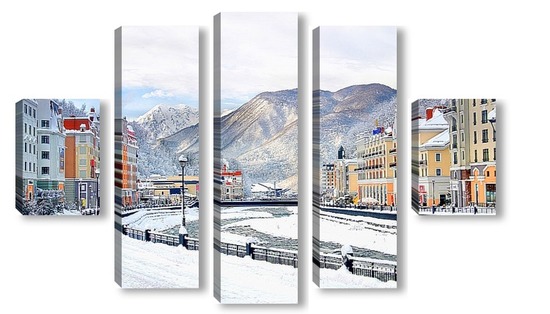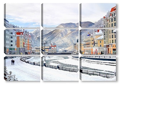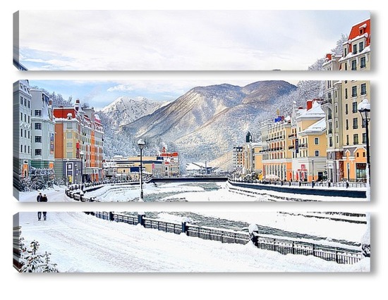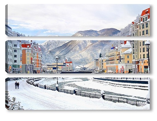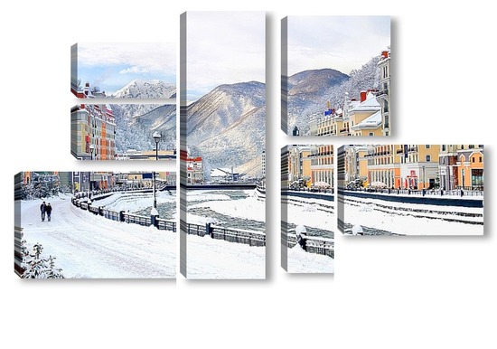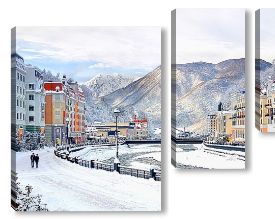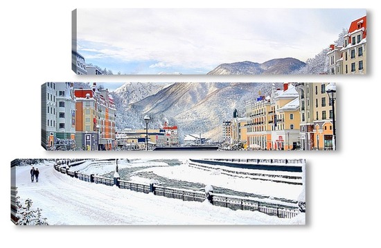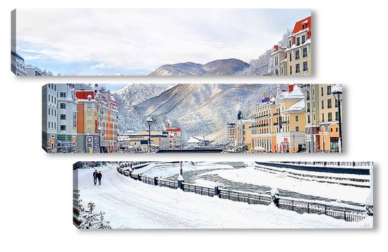Купить модульную картину Роза Хутор. Горнолыжный курорт вблизи города Сочи. Набережная зимой.
