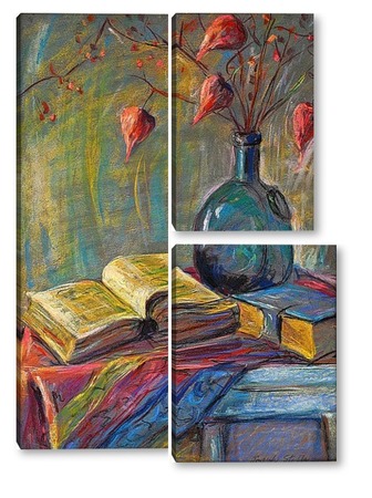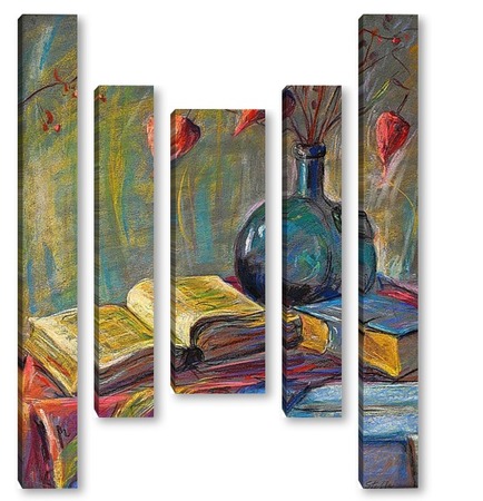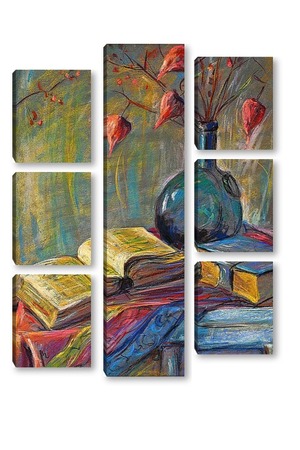 Купить модульную картину Натюрморт книги и китайские фонарики