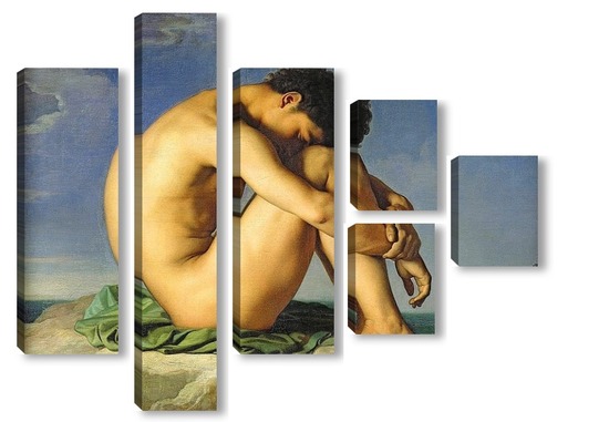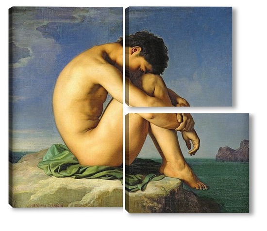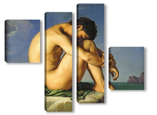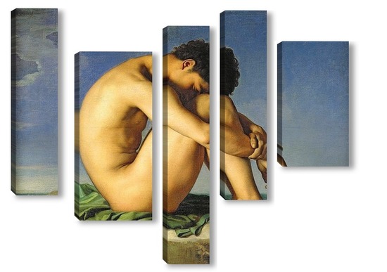 Купить модульную картину ГОЛЫЙ МОЛОДОЙ ЧЕЛОВЕК СИДИТ У МОРЯ