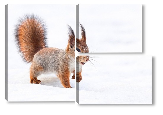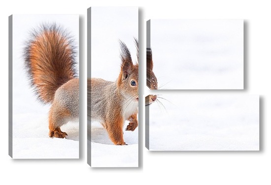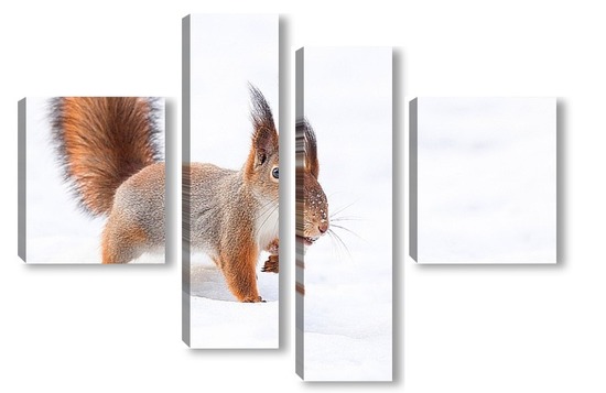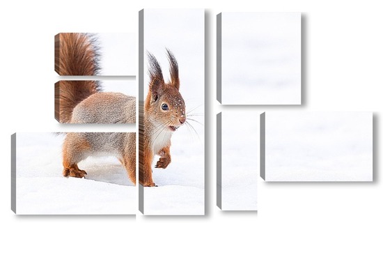 Купить модульную картину Белка на снегу