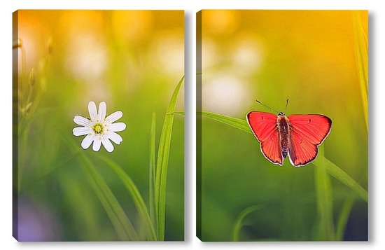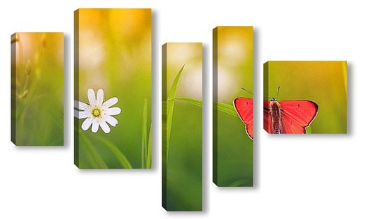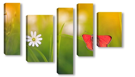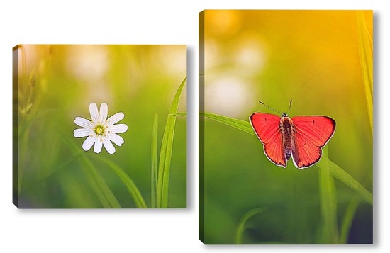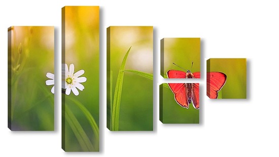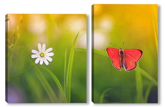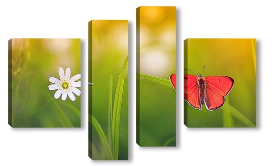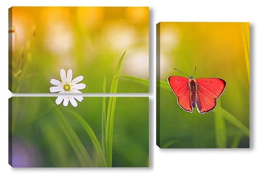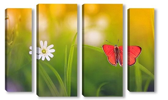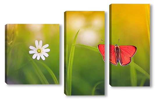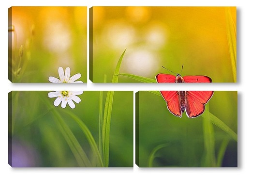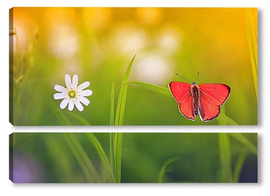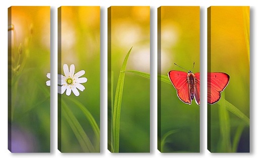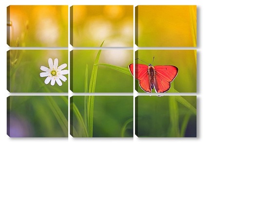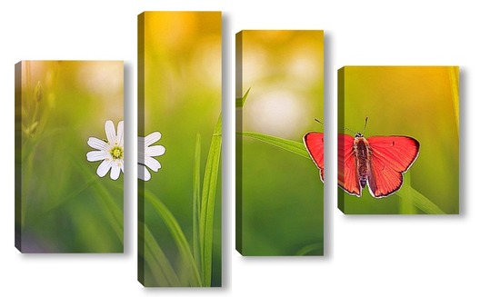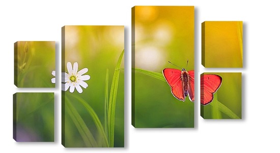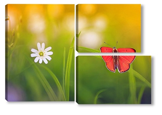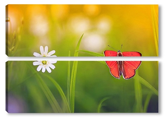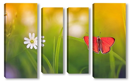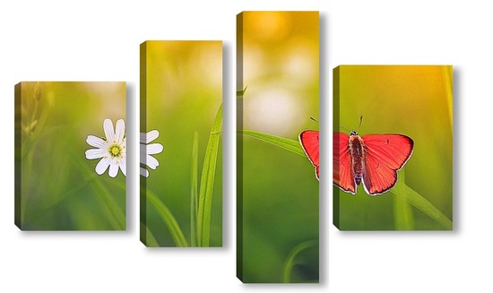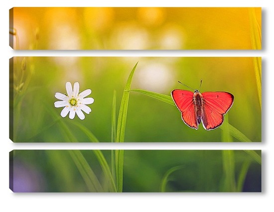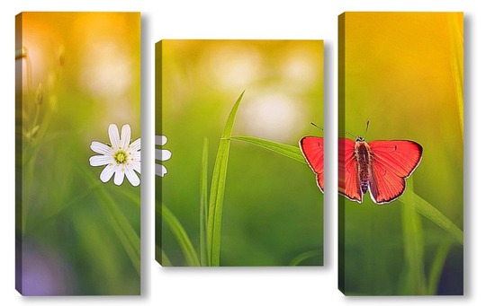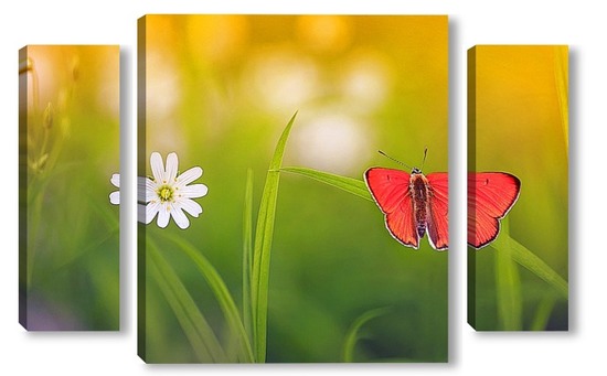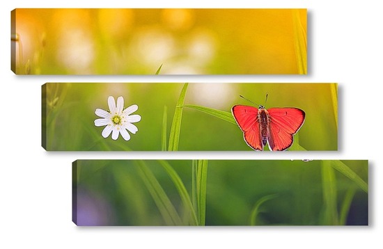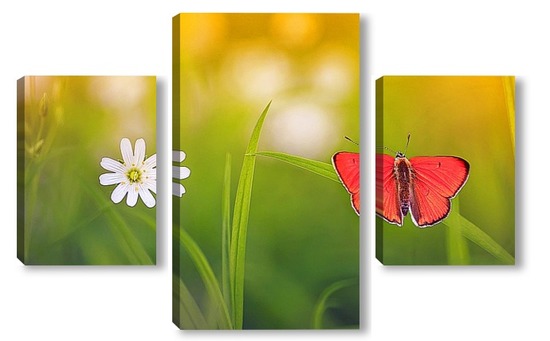 Купить модульную картину яркая оранжевая бабочка сидит на летнем лугу