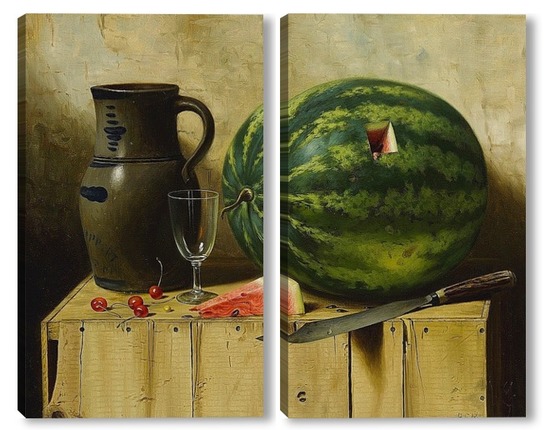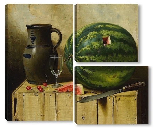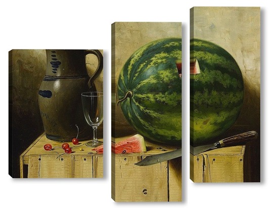 Купить модульную картину НАТЮРМОРТ С АРБУЗОМ, КУВШИНОМ И НОЖОМ