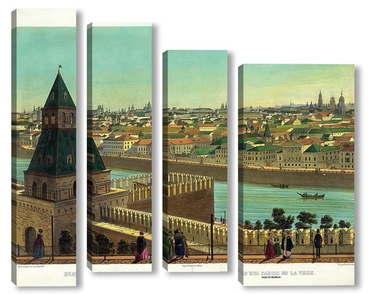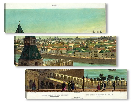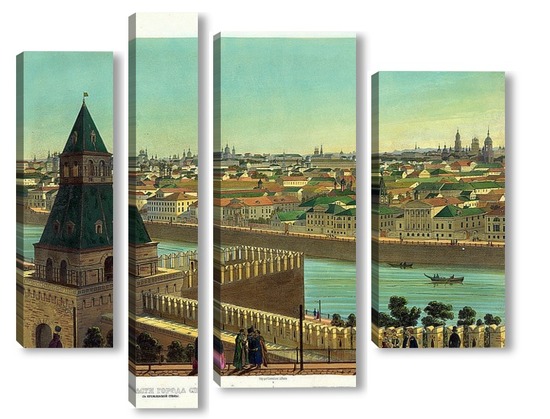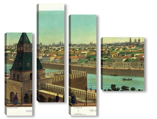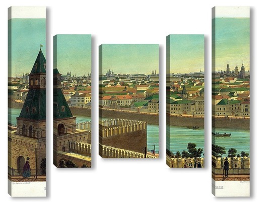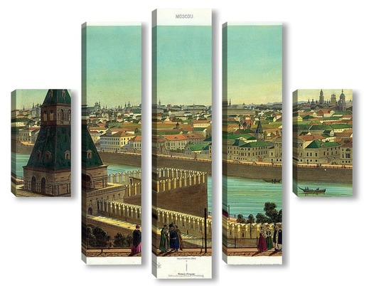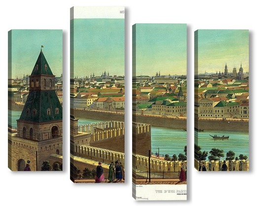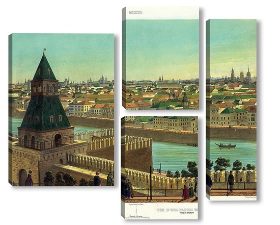 Купить модульную картину Вид части города, снятый с Кремлевской стены. Видна Тайницкая башня 1845 – 1850