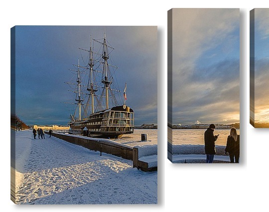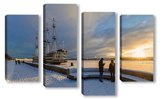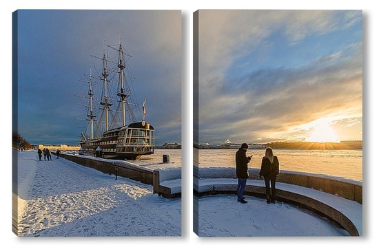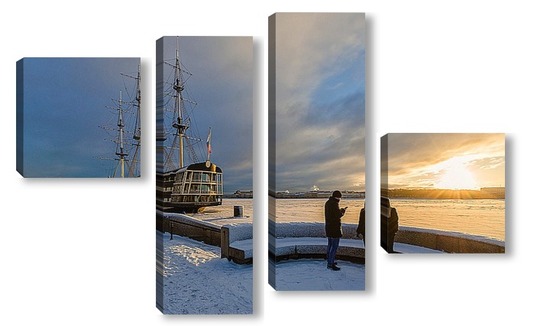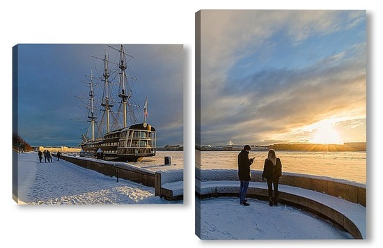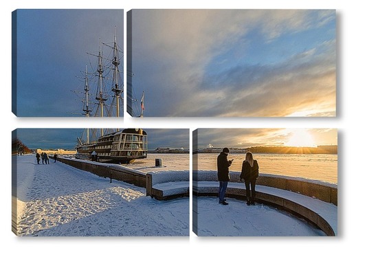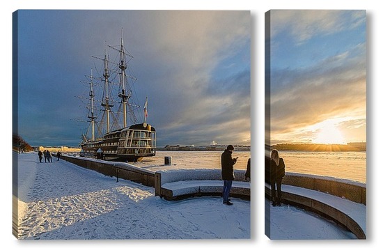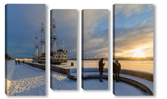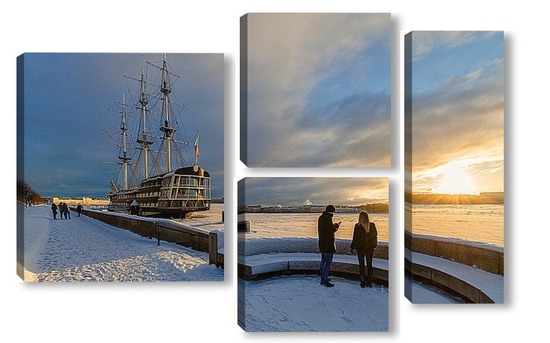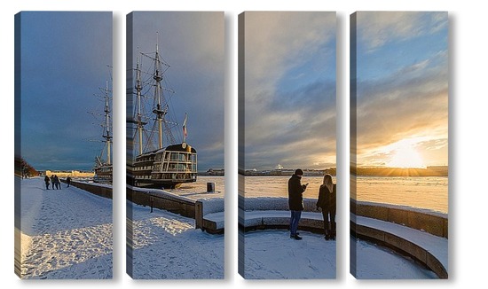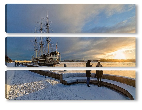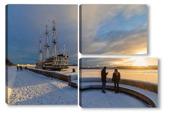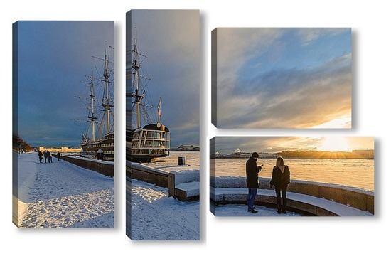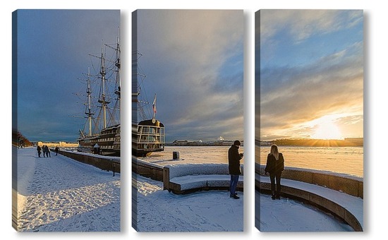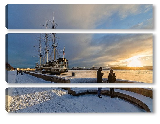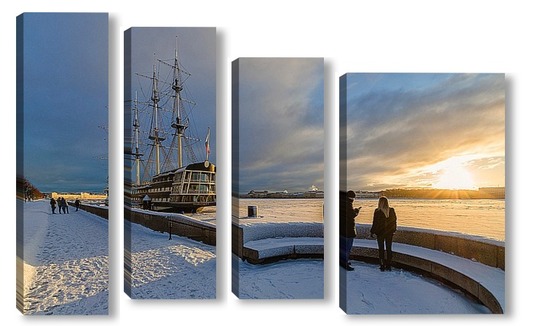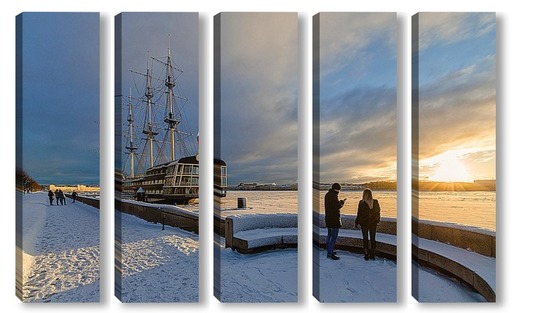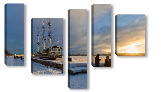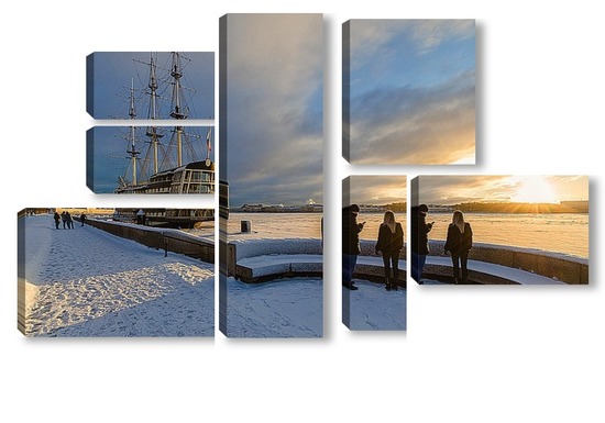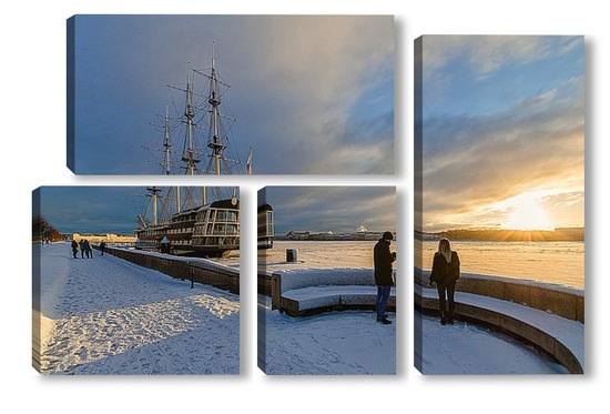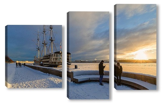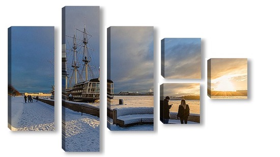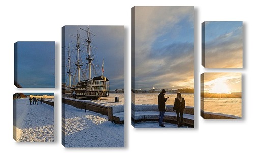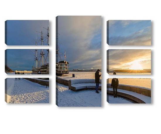 Купить модульную картину Зимний рассвет на Петровской набережной.