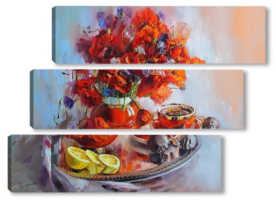 Купить модульную картину Маки в теплом доме