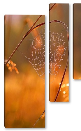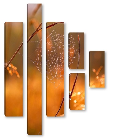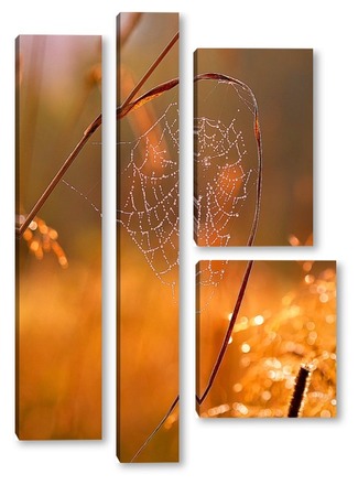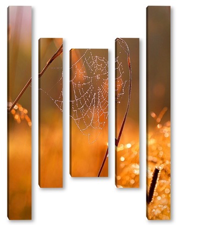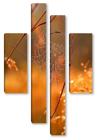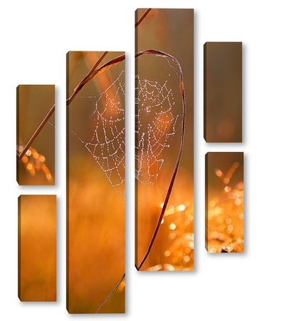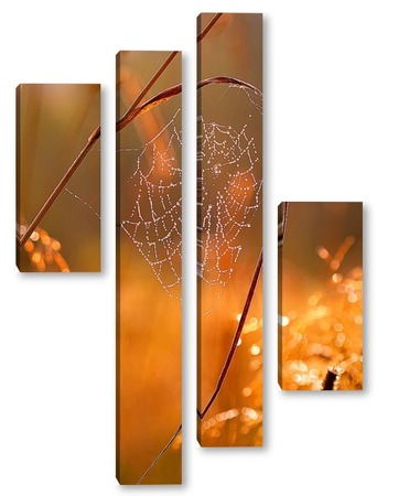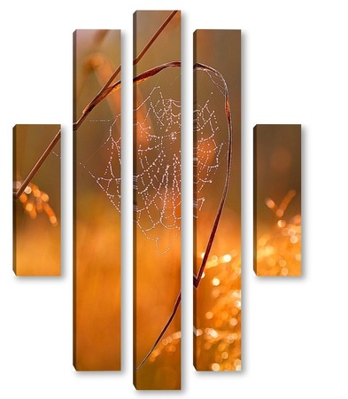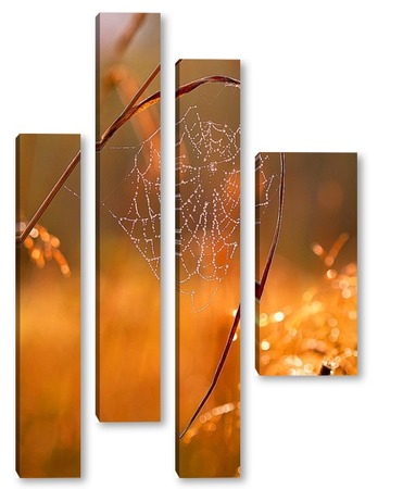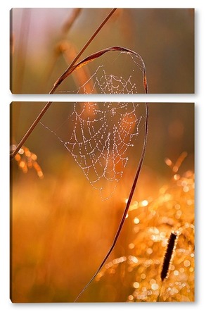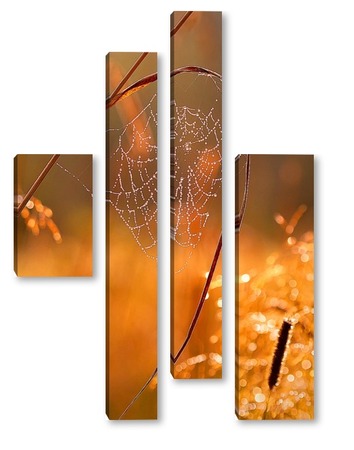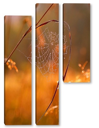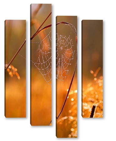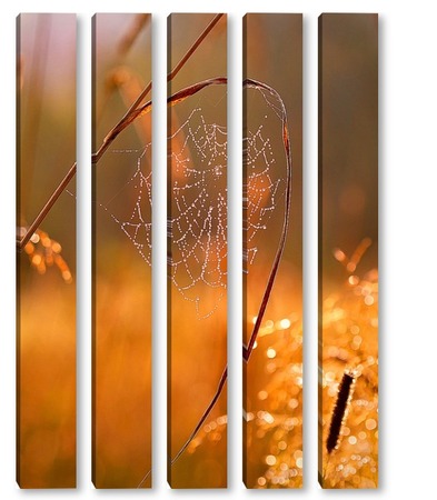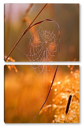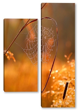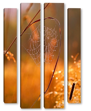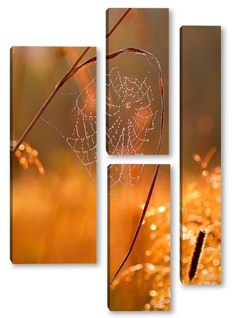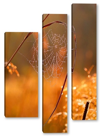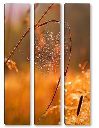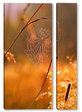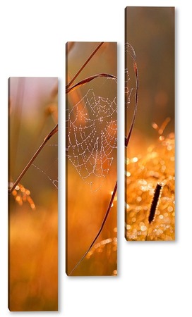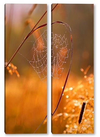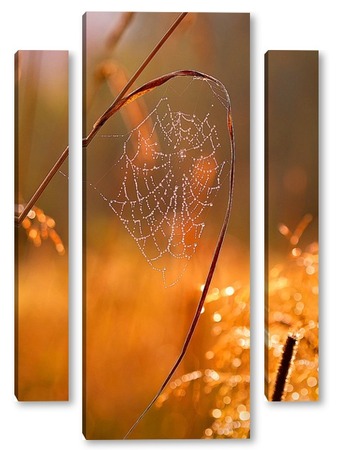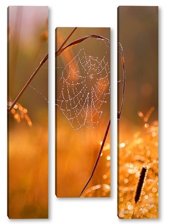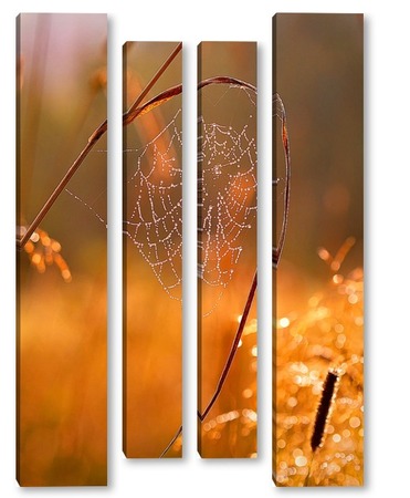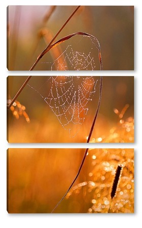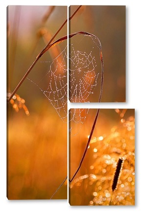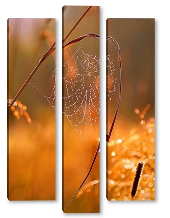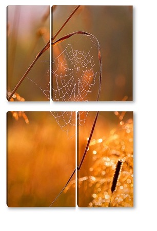 Купить модульную картину Паутина на стебле травы в лучах заходящего солнца