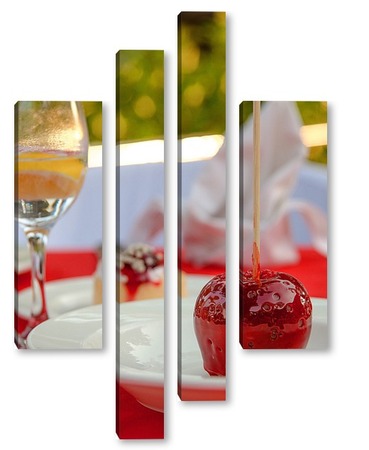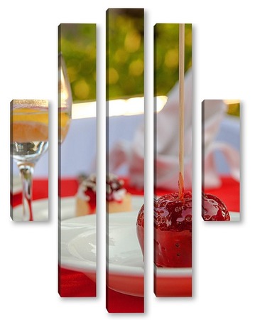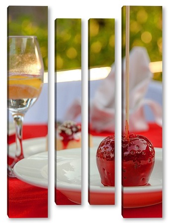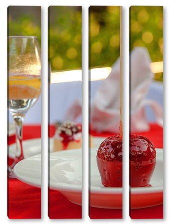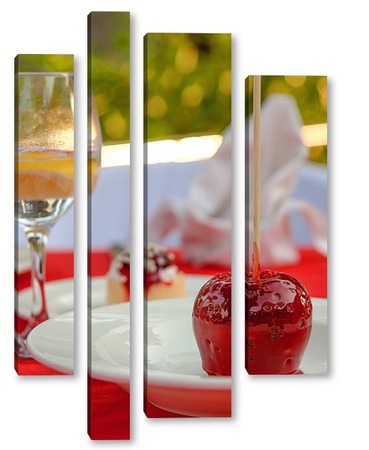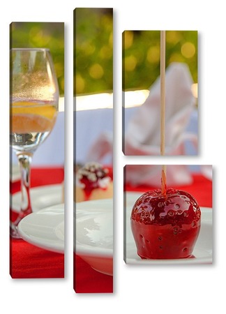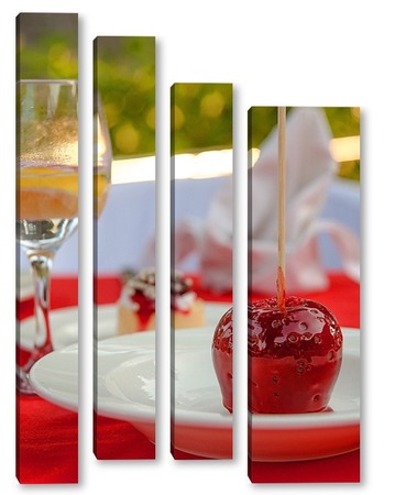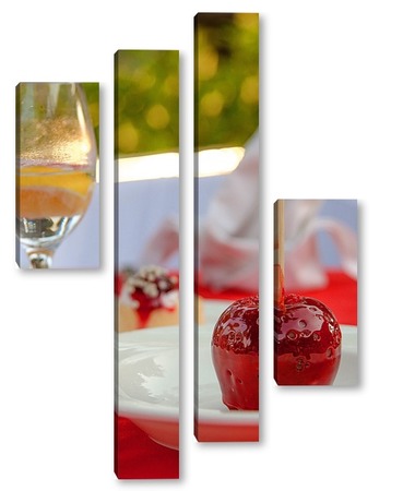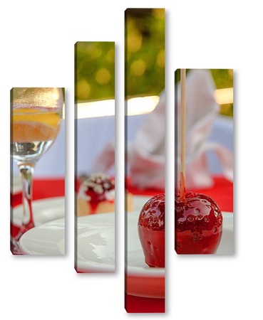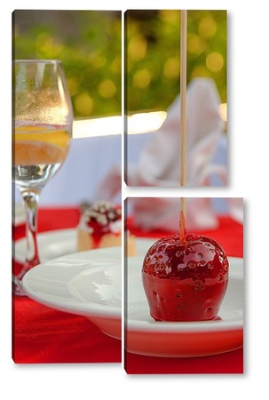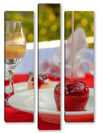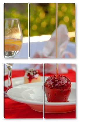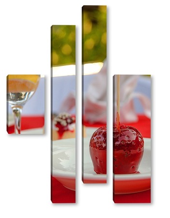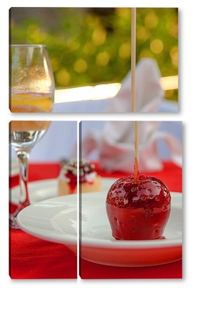 Купить модульную картину Красное яблоко в карамели, натюрморт