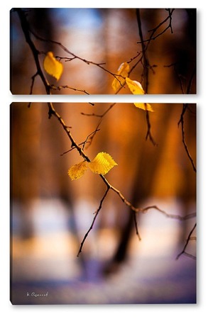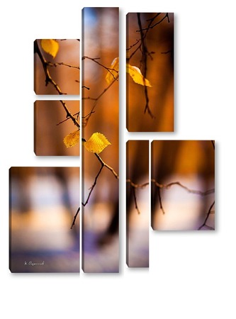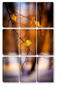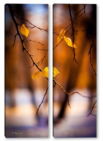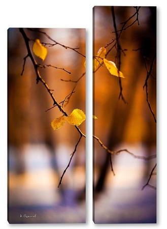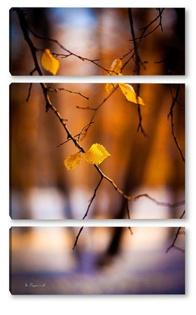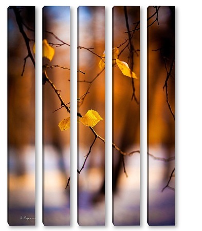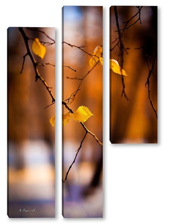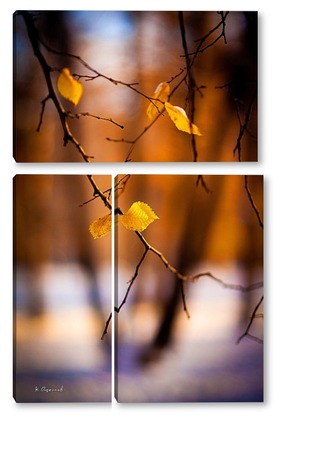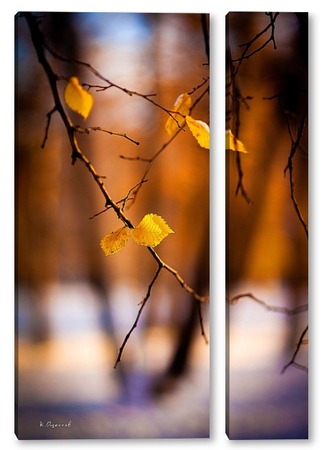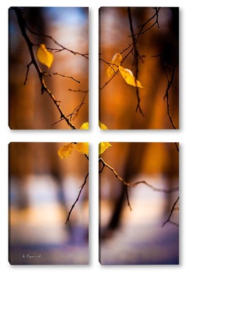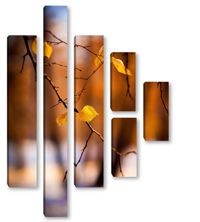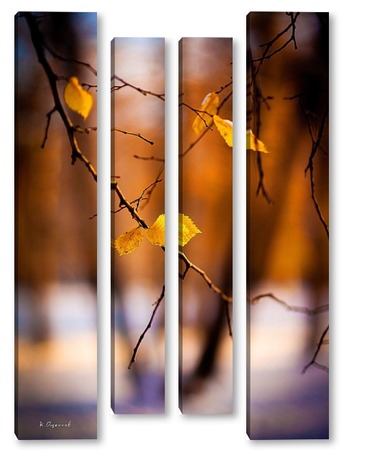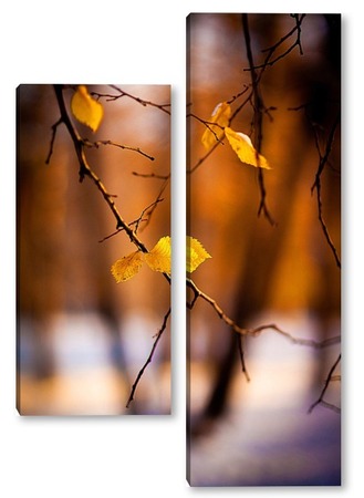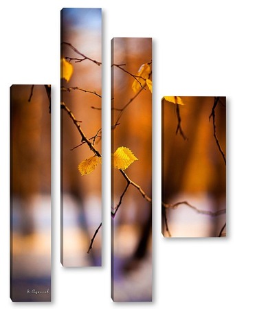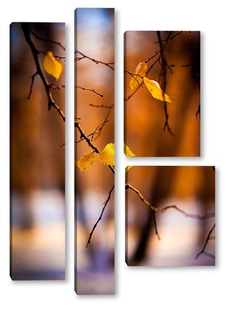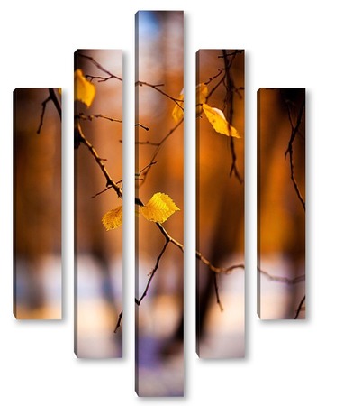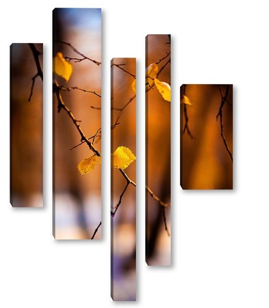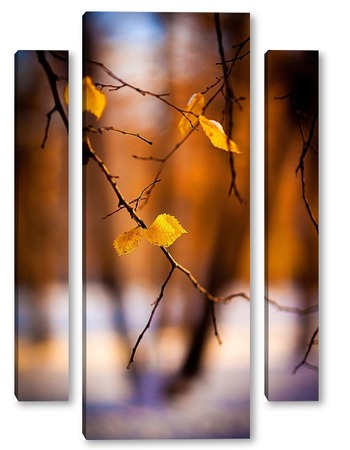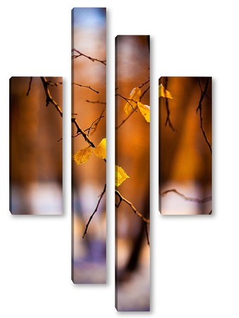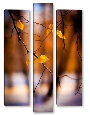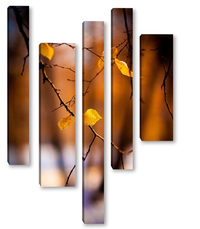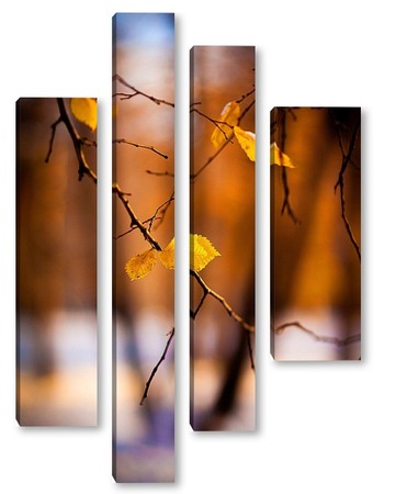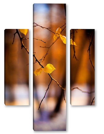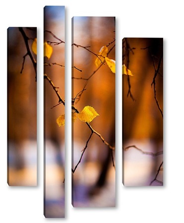 Купить модульную картину Жёлтые листья на фоне чёрных стволов деревьев.