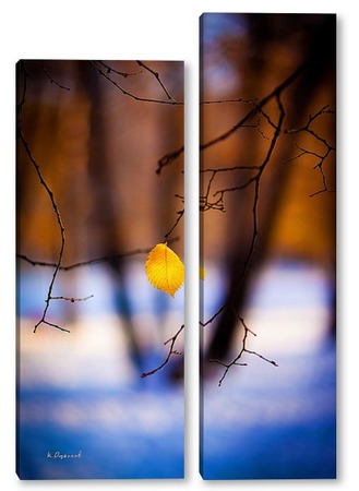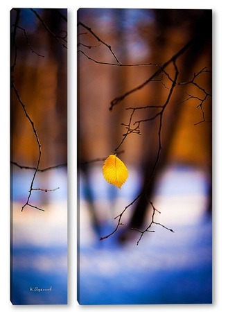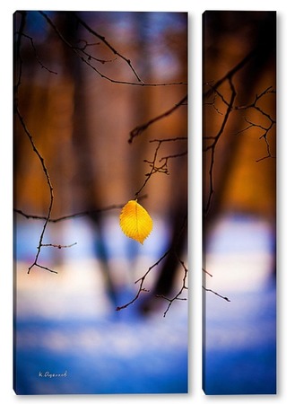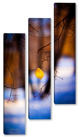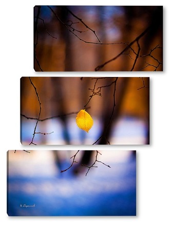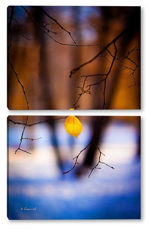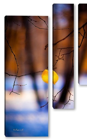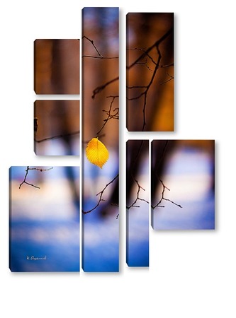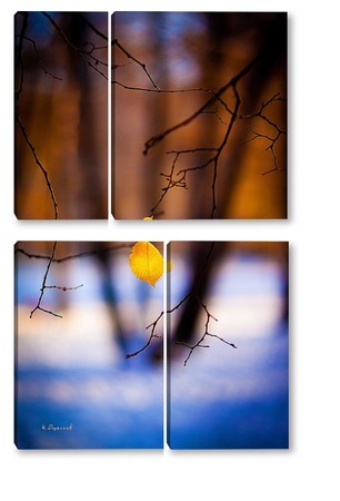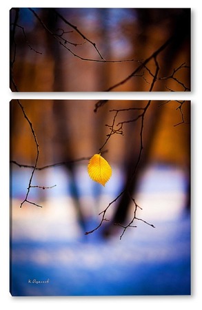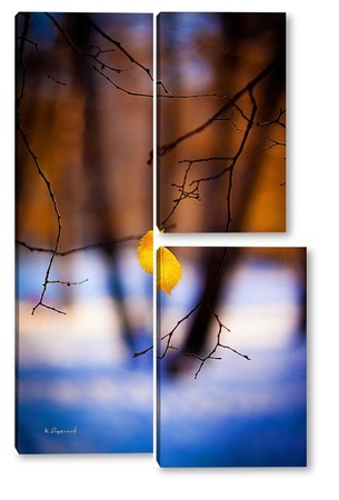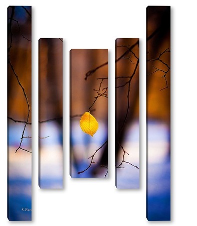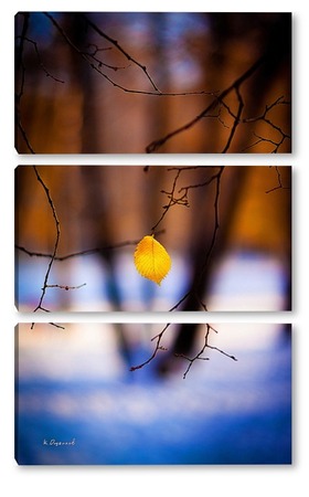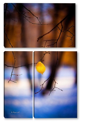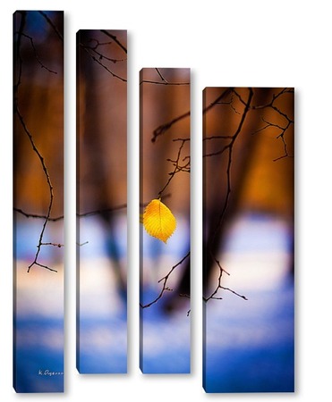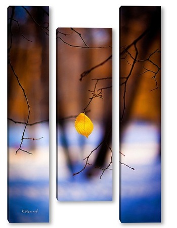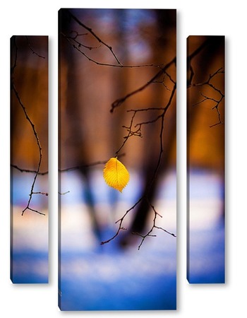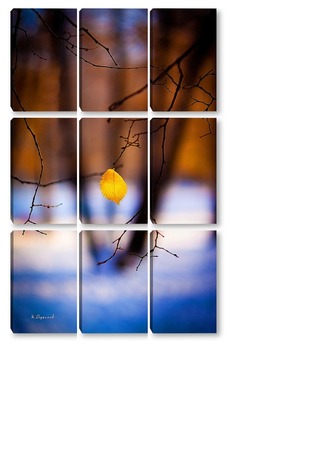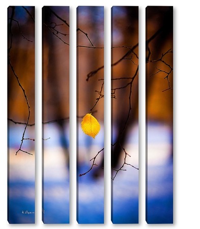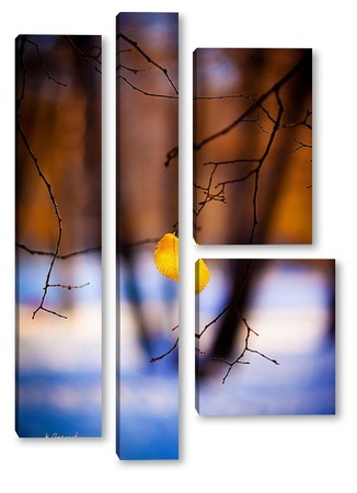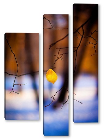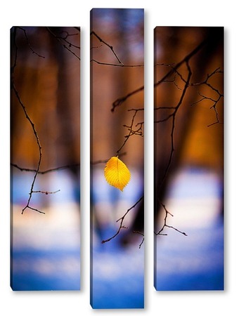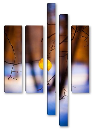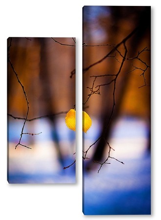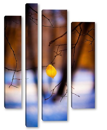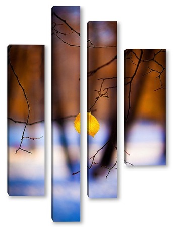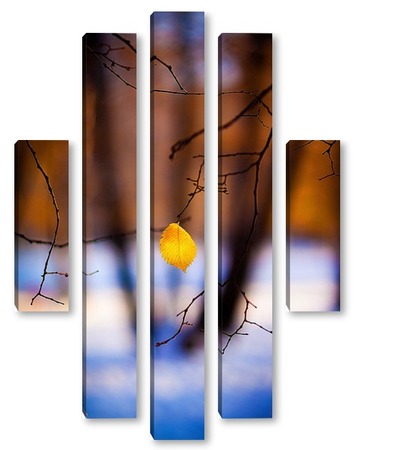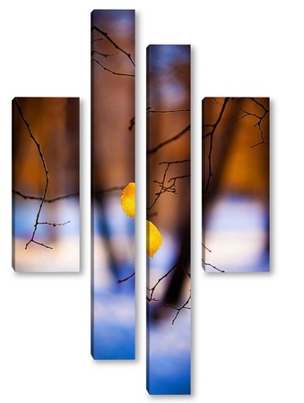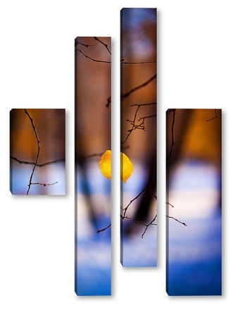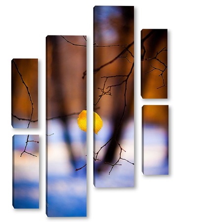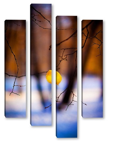 Купить модульную картину Жёлтый лист на фоне чёрных стволов.