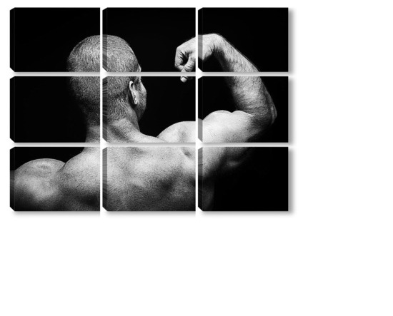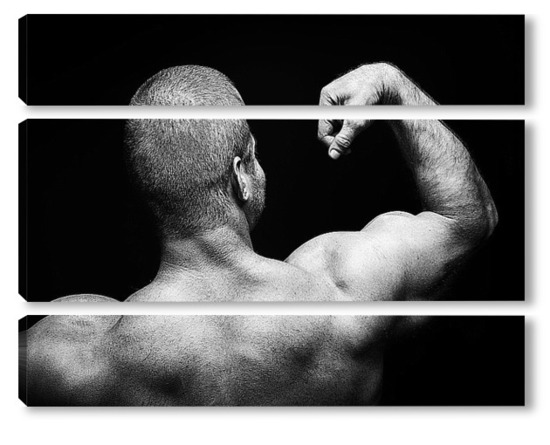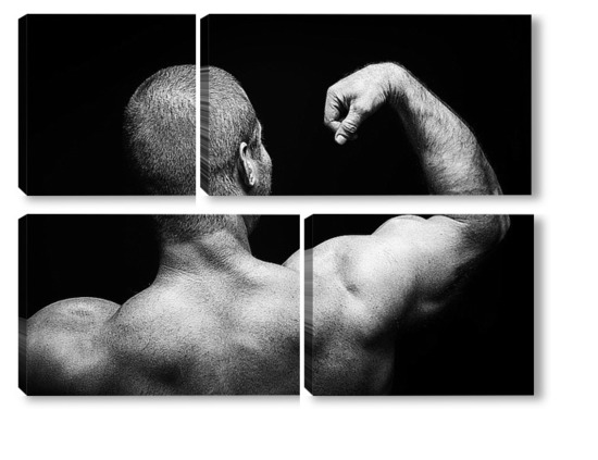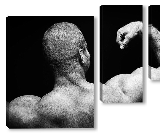 Купить модульную картину Портрет бодибилдера на черном фоне