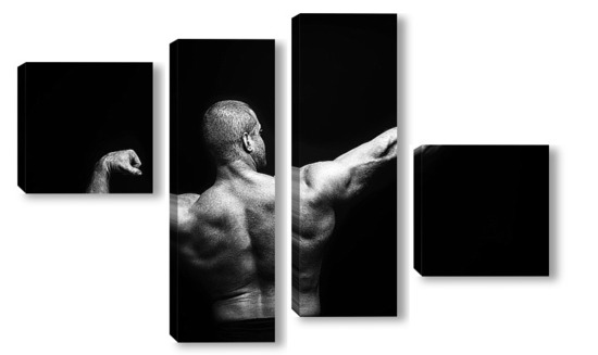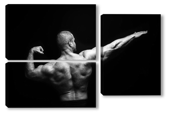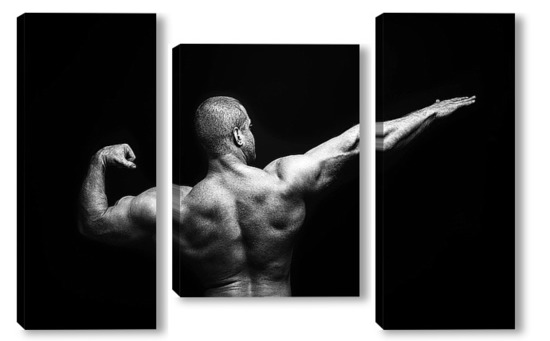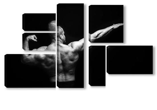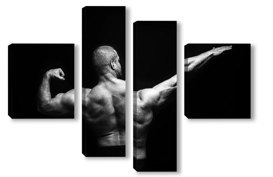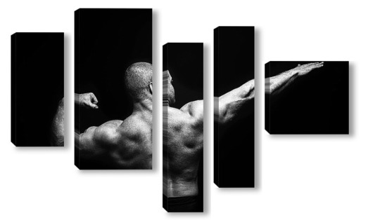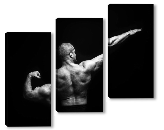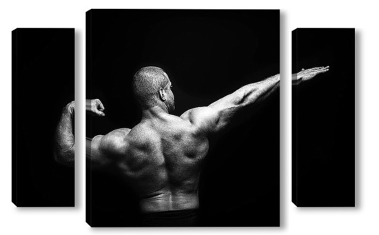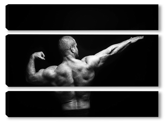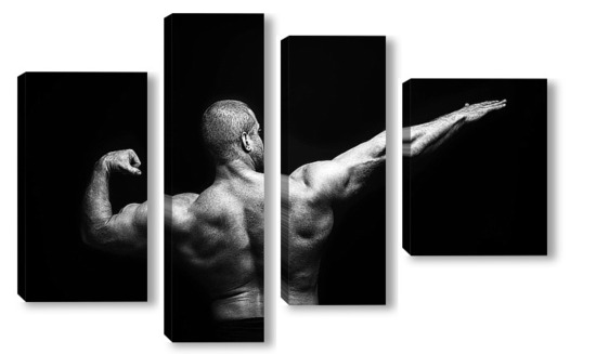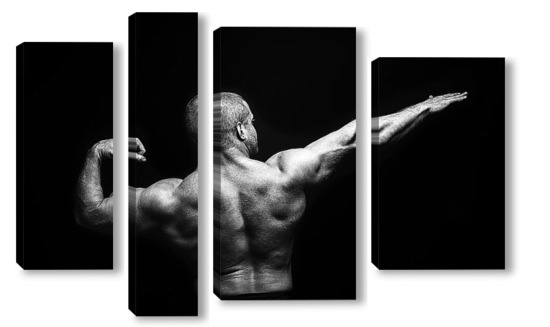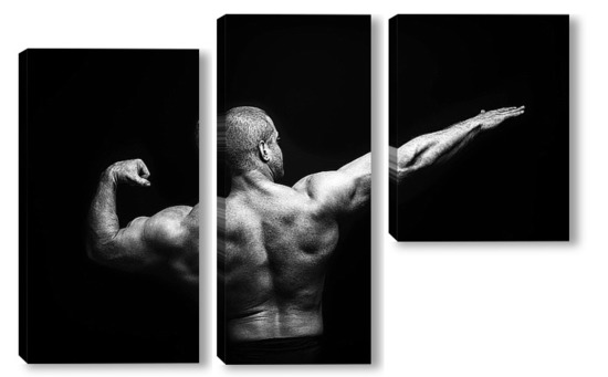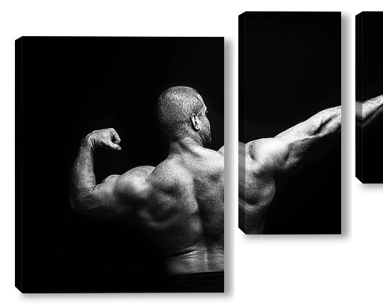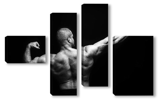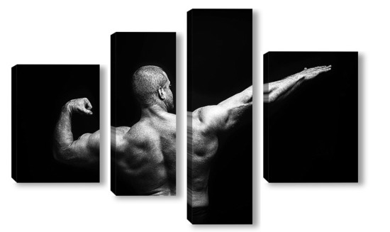 Купить модульную картину Портрет бодибилдера на черном фоне
