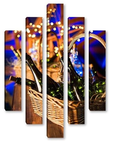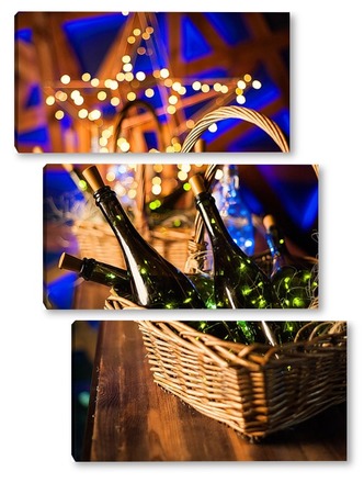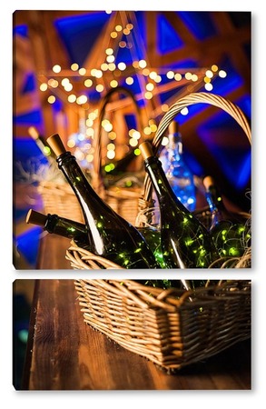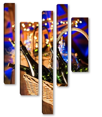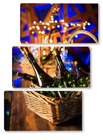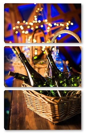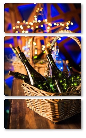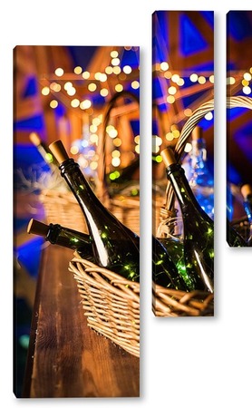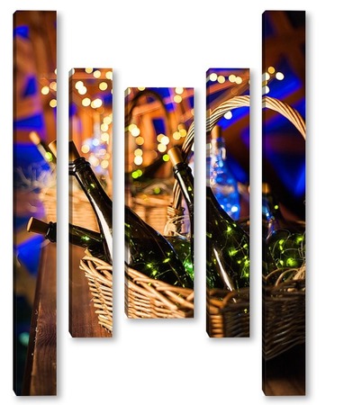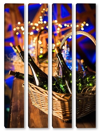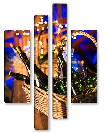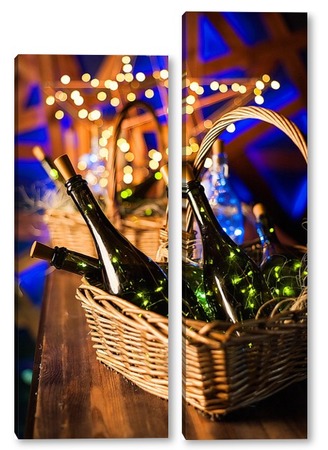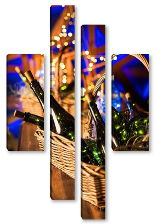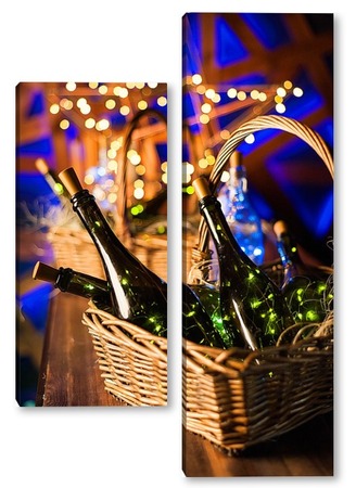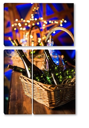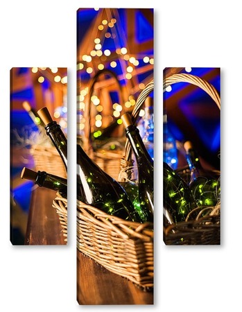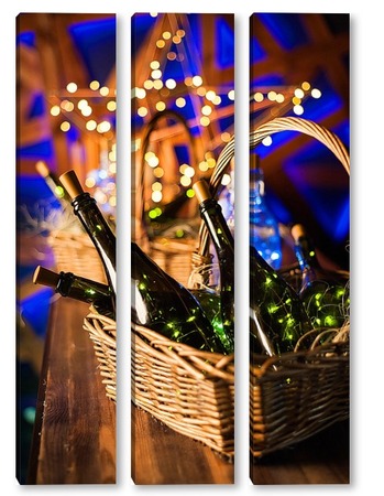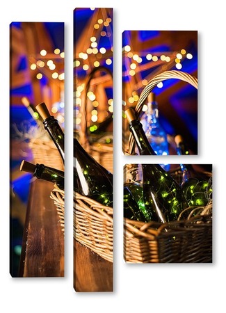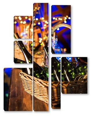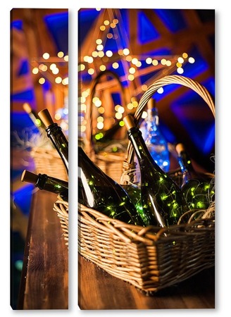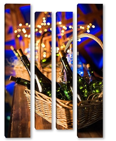 Купить модульную картину Бутылки вина в плетеной корзине.