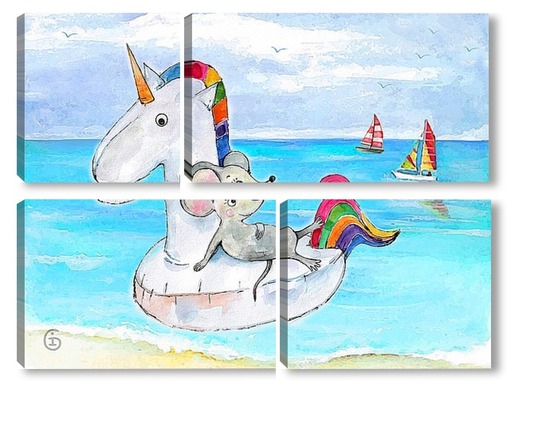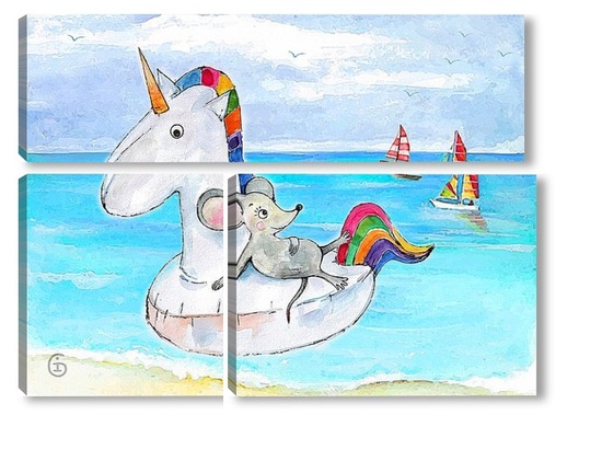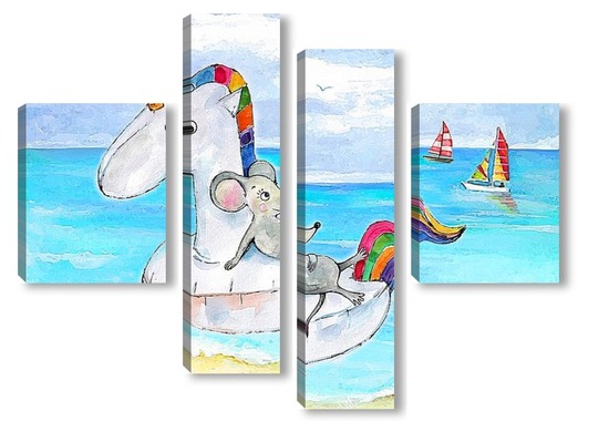Купить модульную картину Картина "Мышка на море" станет чудесным украшением вашего интерьера, будь то гостиная, спальня, детская или офис. Картина будет радовать Вас и приносить удачу!